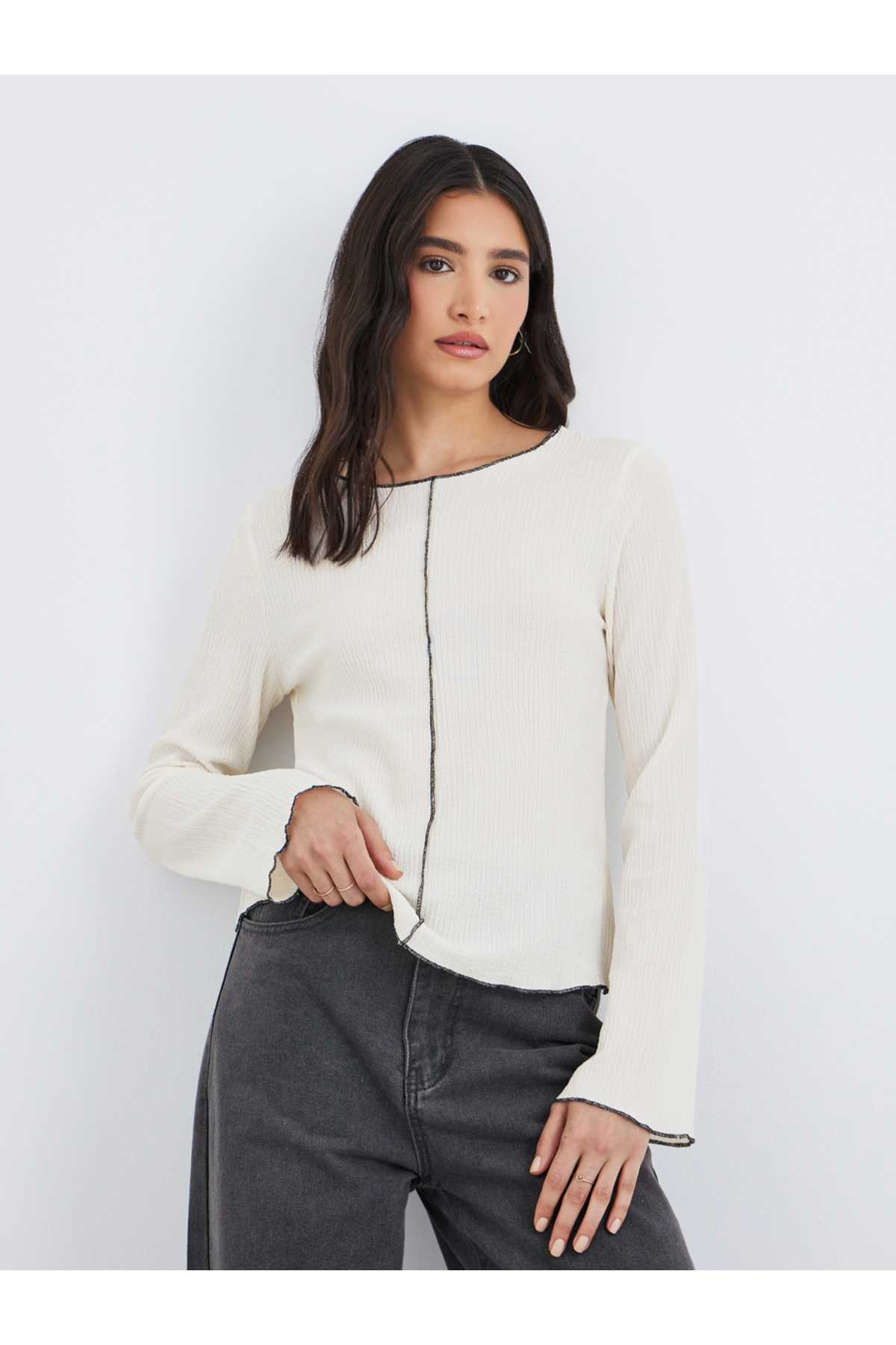 ميزات بلوزة سادة ذات رقبة دائرية وأكمام واسعة من Styli