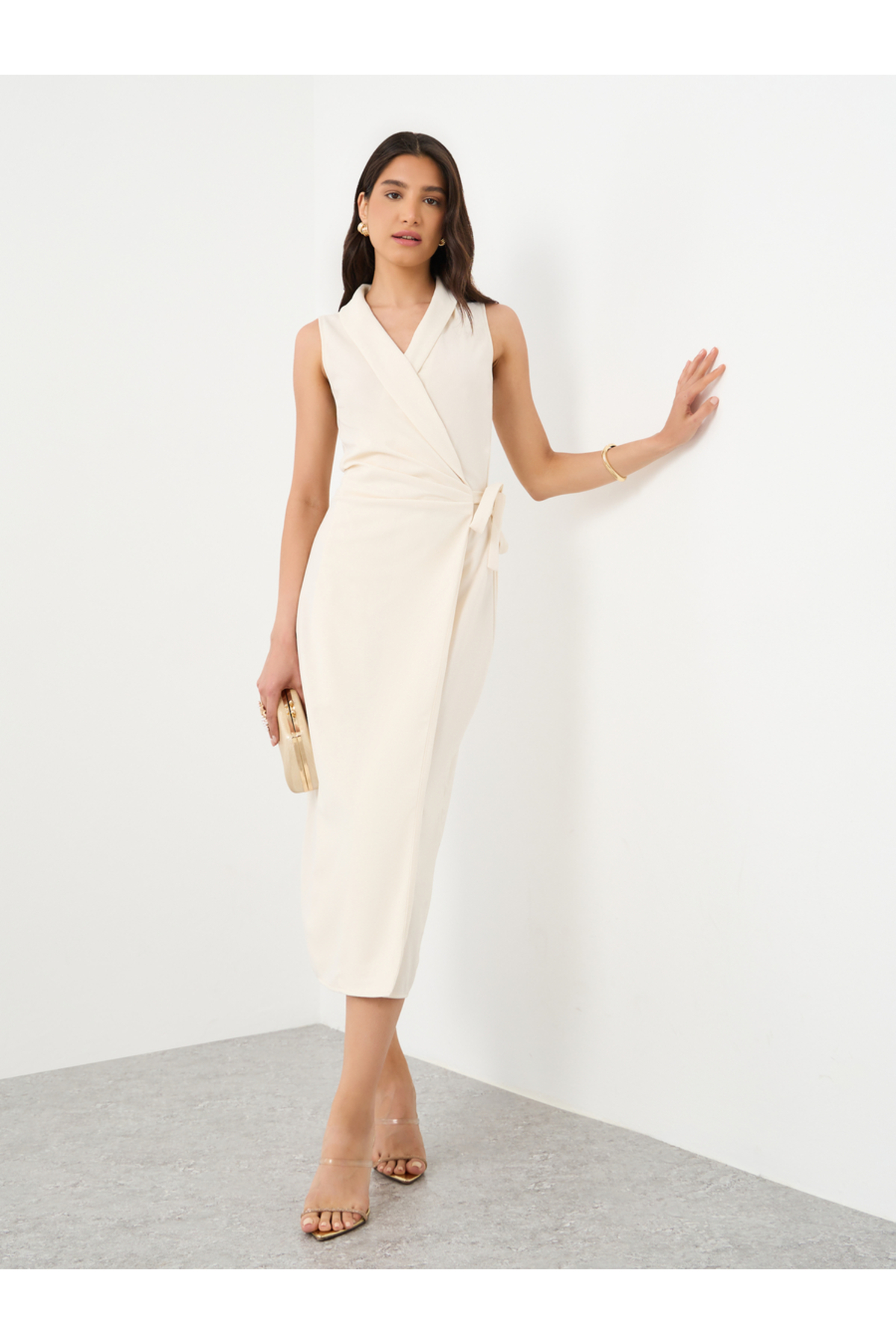 ميزات فستان ميدي سادة بدون أكمام من Styli