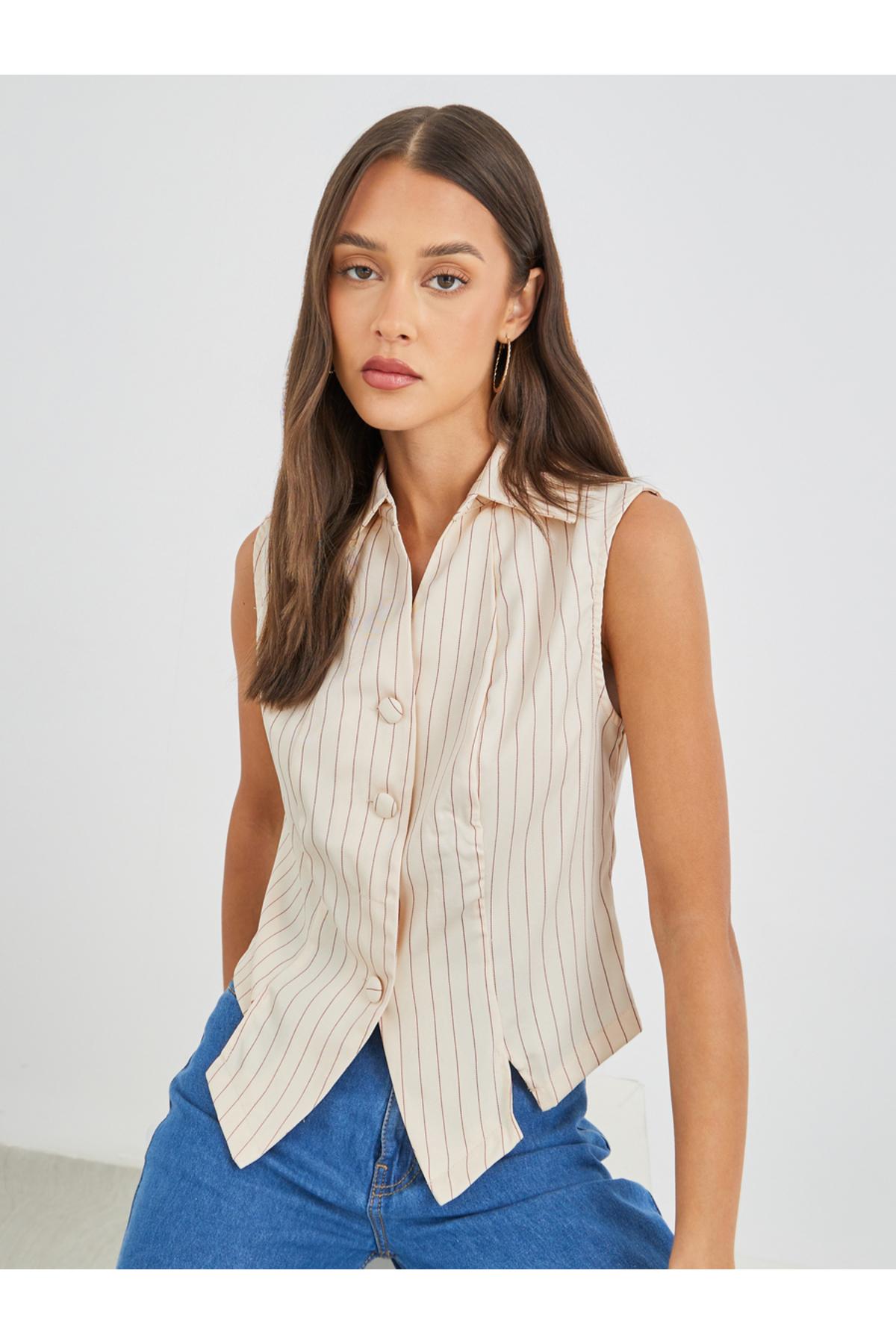 ميزات سترة مخططة بأزرار أمامية من Styli