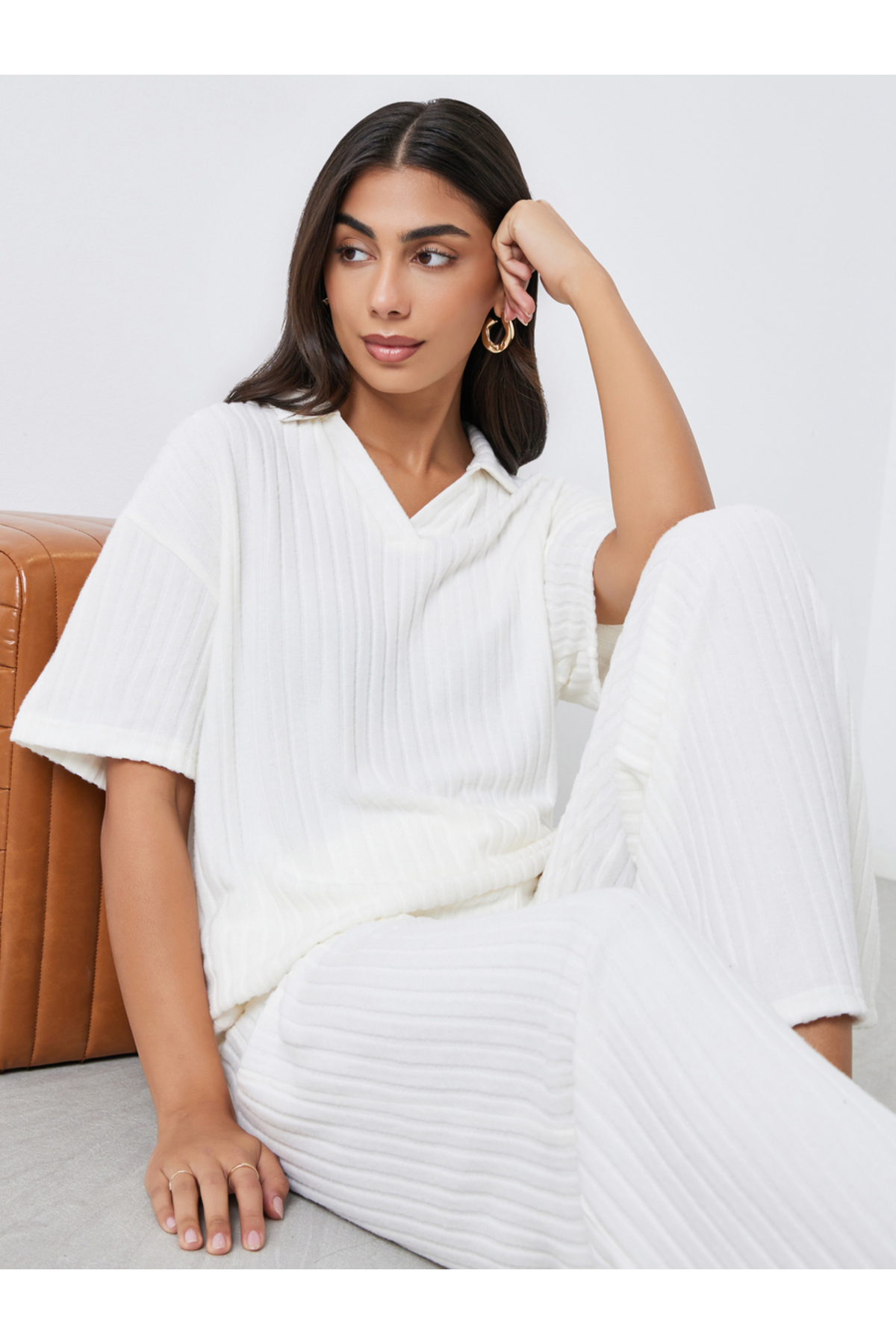 ميزات بلوزة قصة فضفاضة بياقة مضلعة باللون الأبيض من Styli