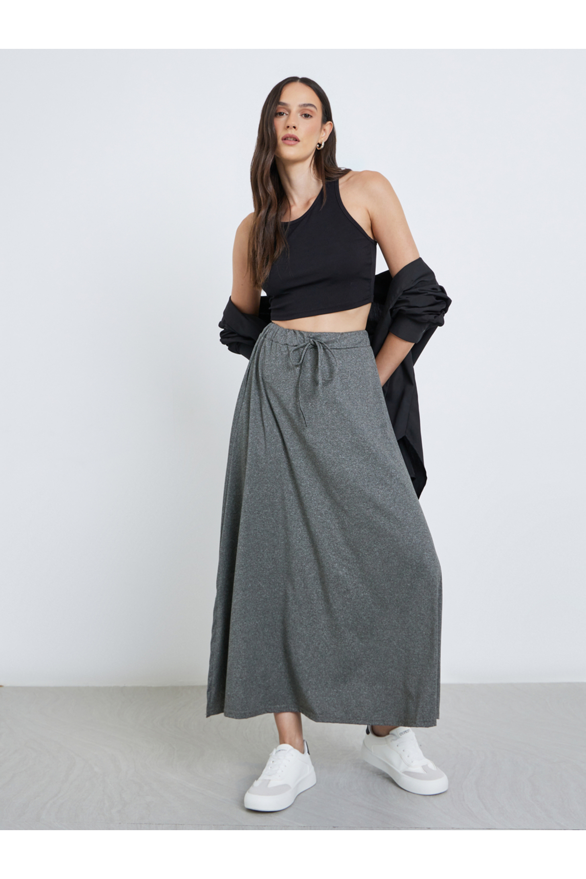 ميزات تنورة ميدي سادة للنساء مع رباط من Styli