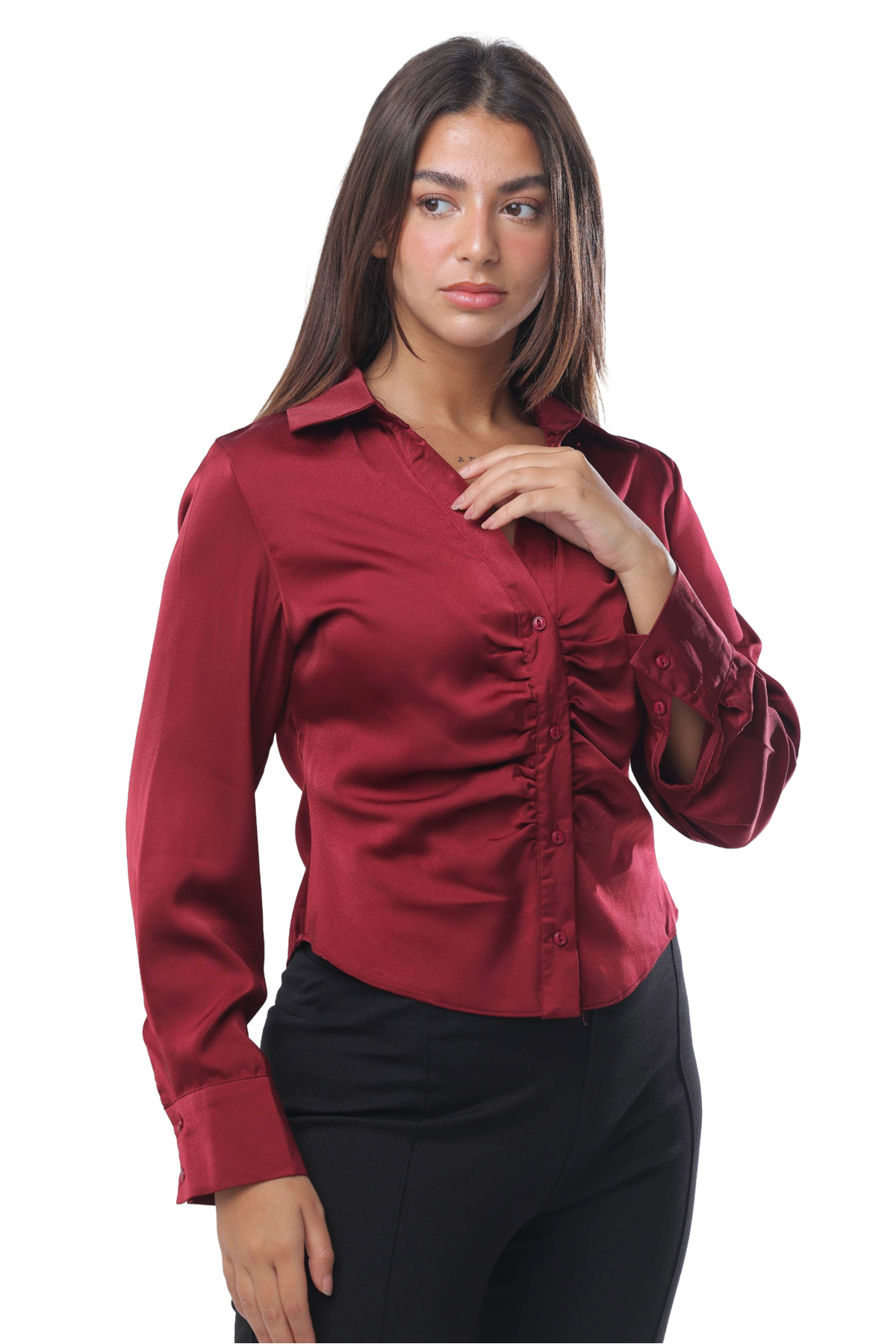 ميزات بلوزة لمسة الساتان من SUGA