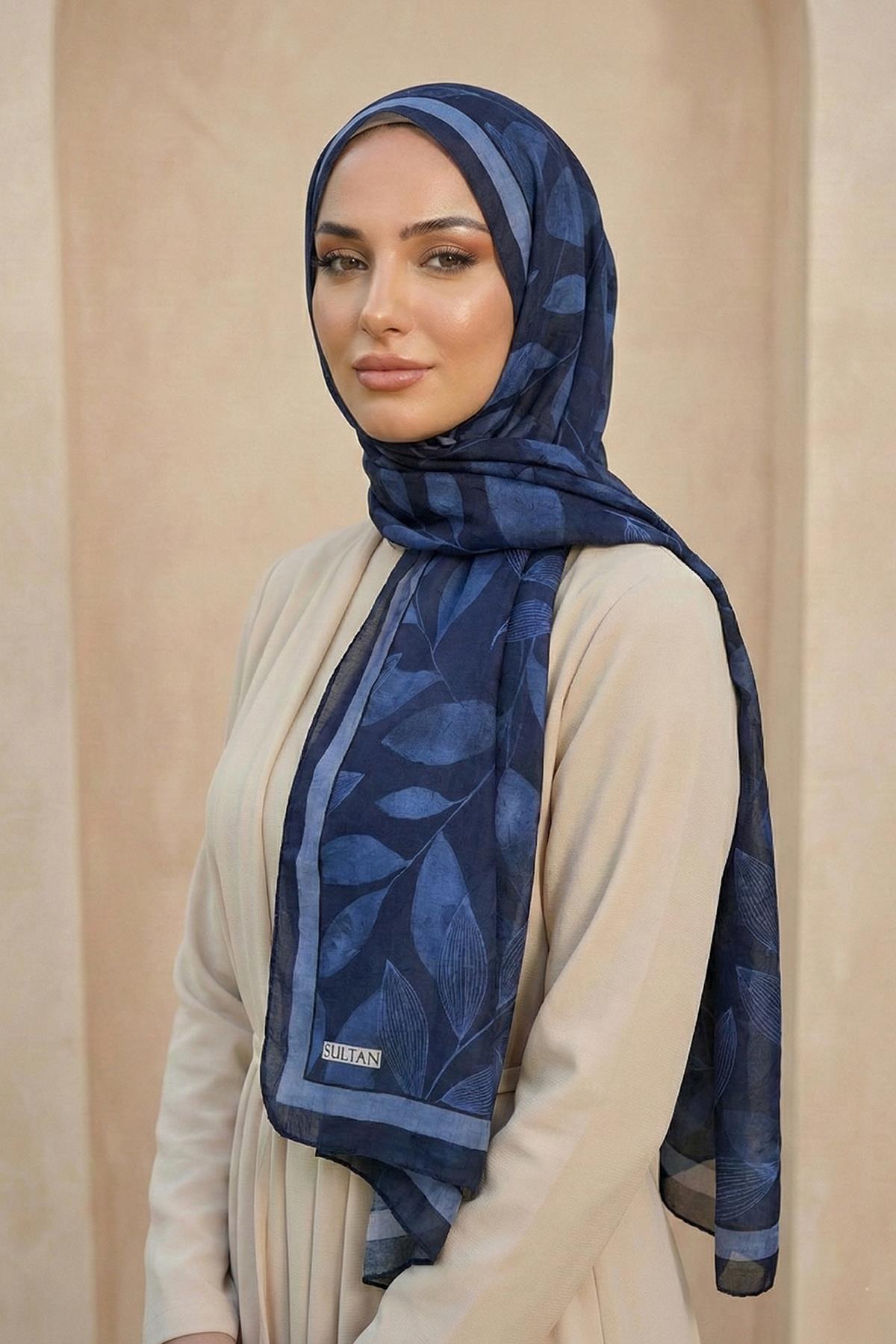 ميزات شال سلطان منقوش بامبو كراش - موديل ورق الشجر - DK07-02 من Sultan Eşarp