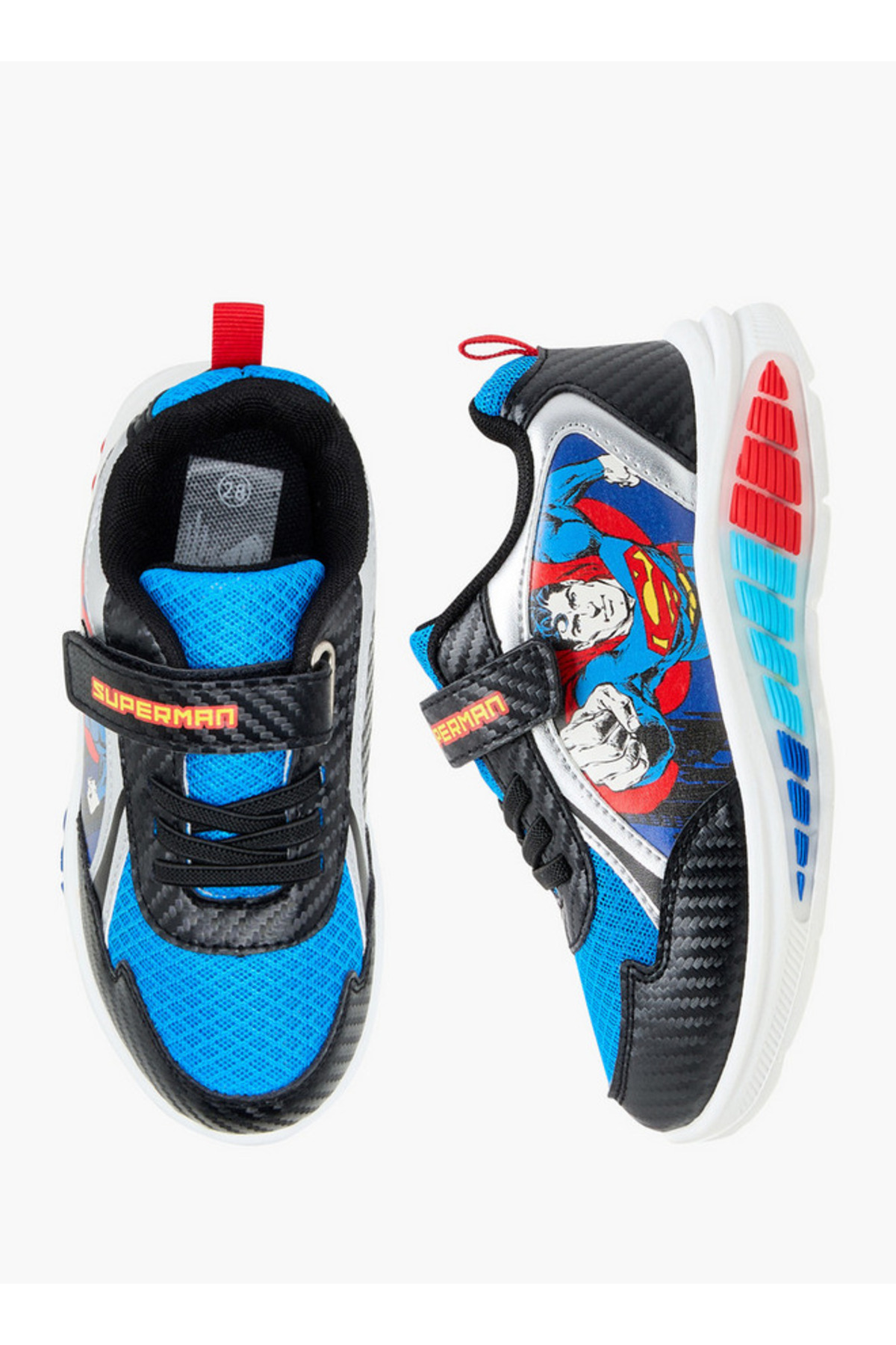 ميزات حذاء رياضي مطبوع ومضيء مع قفل بخطاف وحلقة من Superman