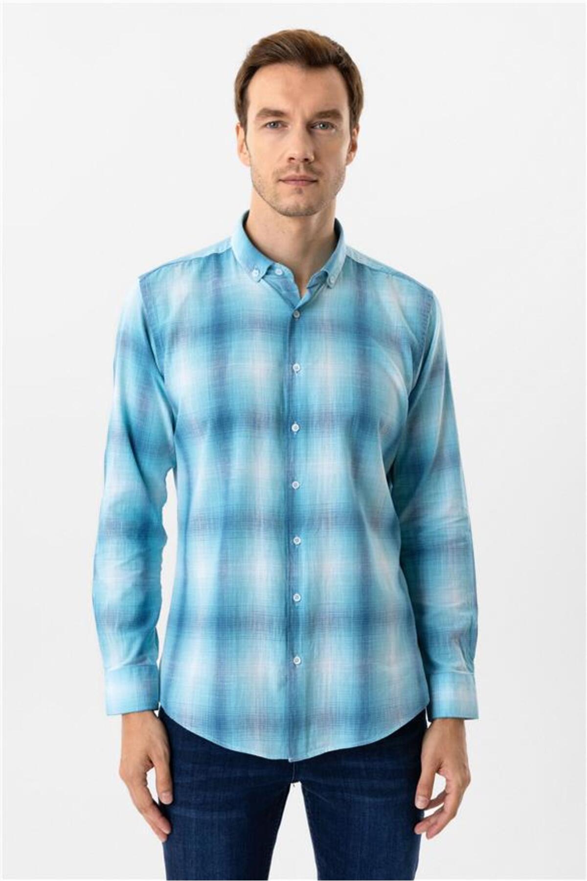 ميزات قميص منقوش بأساور زاوية Slimfit من SÜVARİ
