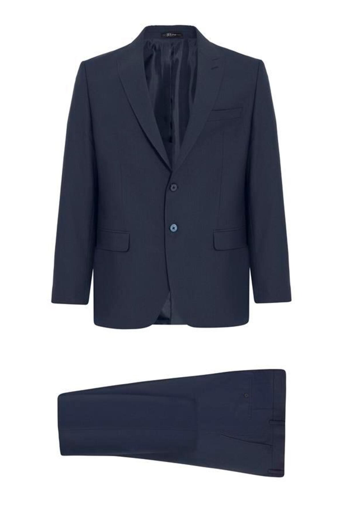 ميزات بدلة زرقاء داكنة منقوشة عادية بياقة بأزرار على الجهتين و4 أزرار من SÜVARİ