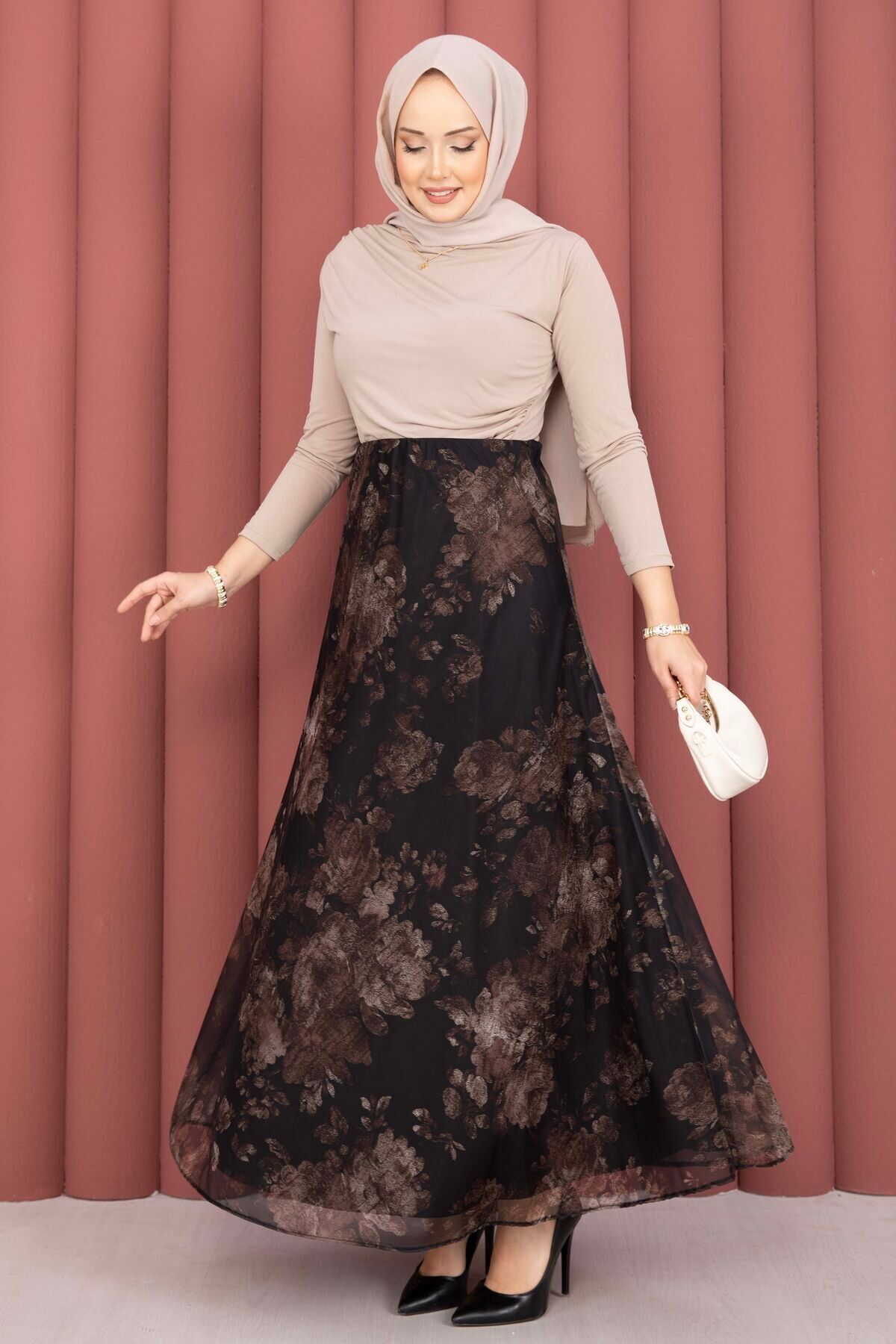 ميزات تنورة بنمط الباتيك تول باللون الأسود من SVS