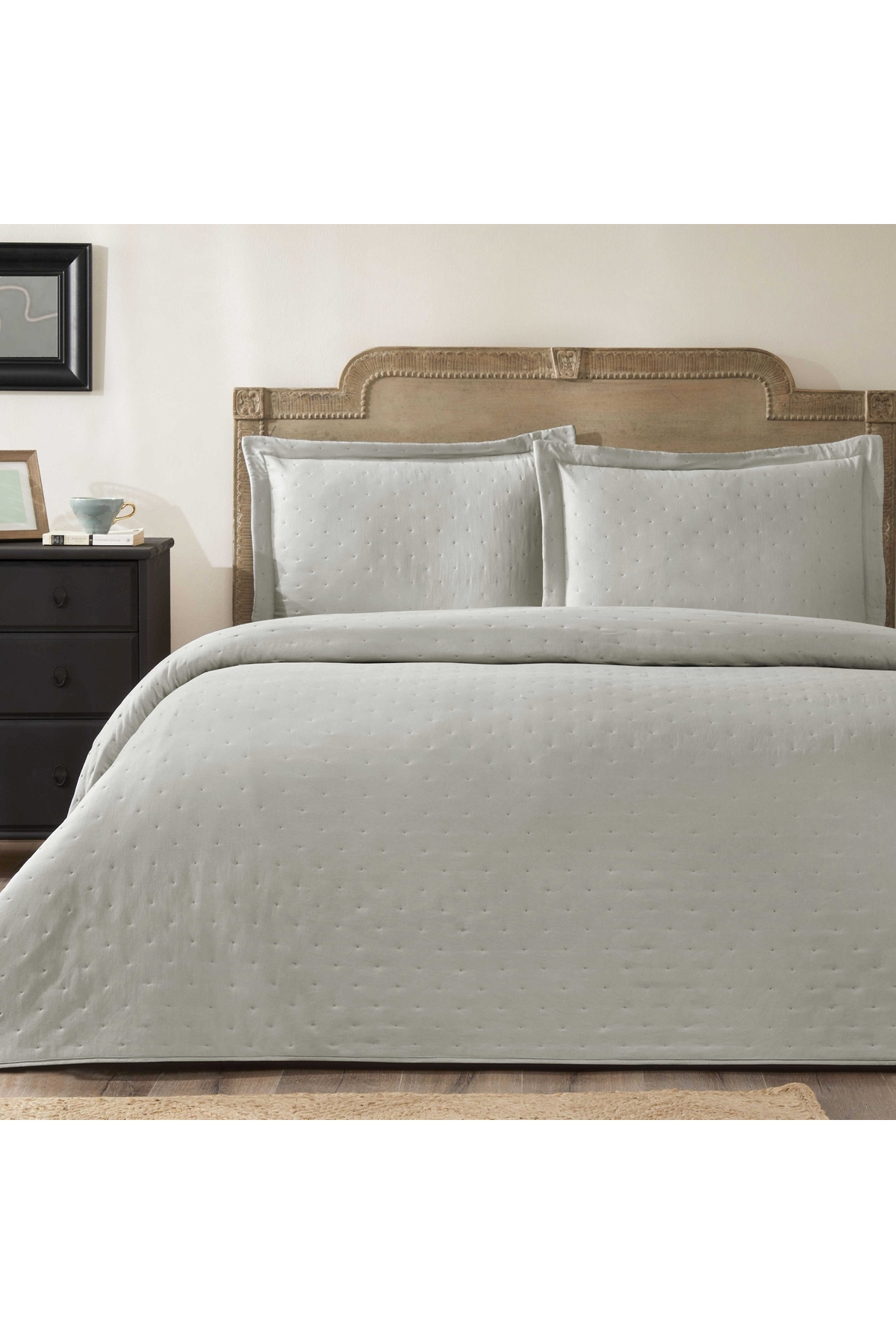 ميزات طقم مفرش سرير مزدوج من ريتا باللون الرمادي من Taç