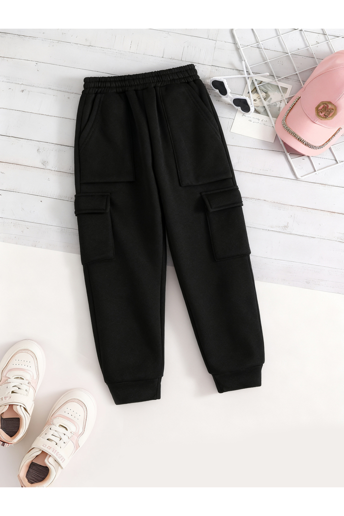Take Two By Styli بنطال رياضي أسود سادة مع جيوب