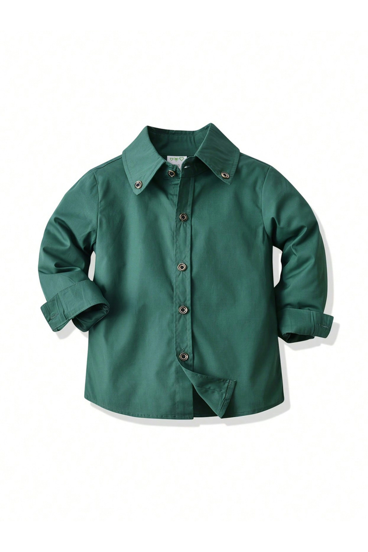 Take Two By Styli قميص أخضر سادة بأزرار أمامية للأولاد