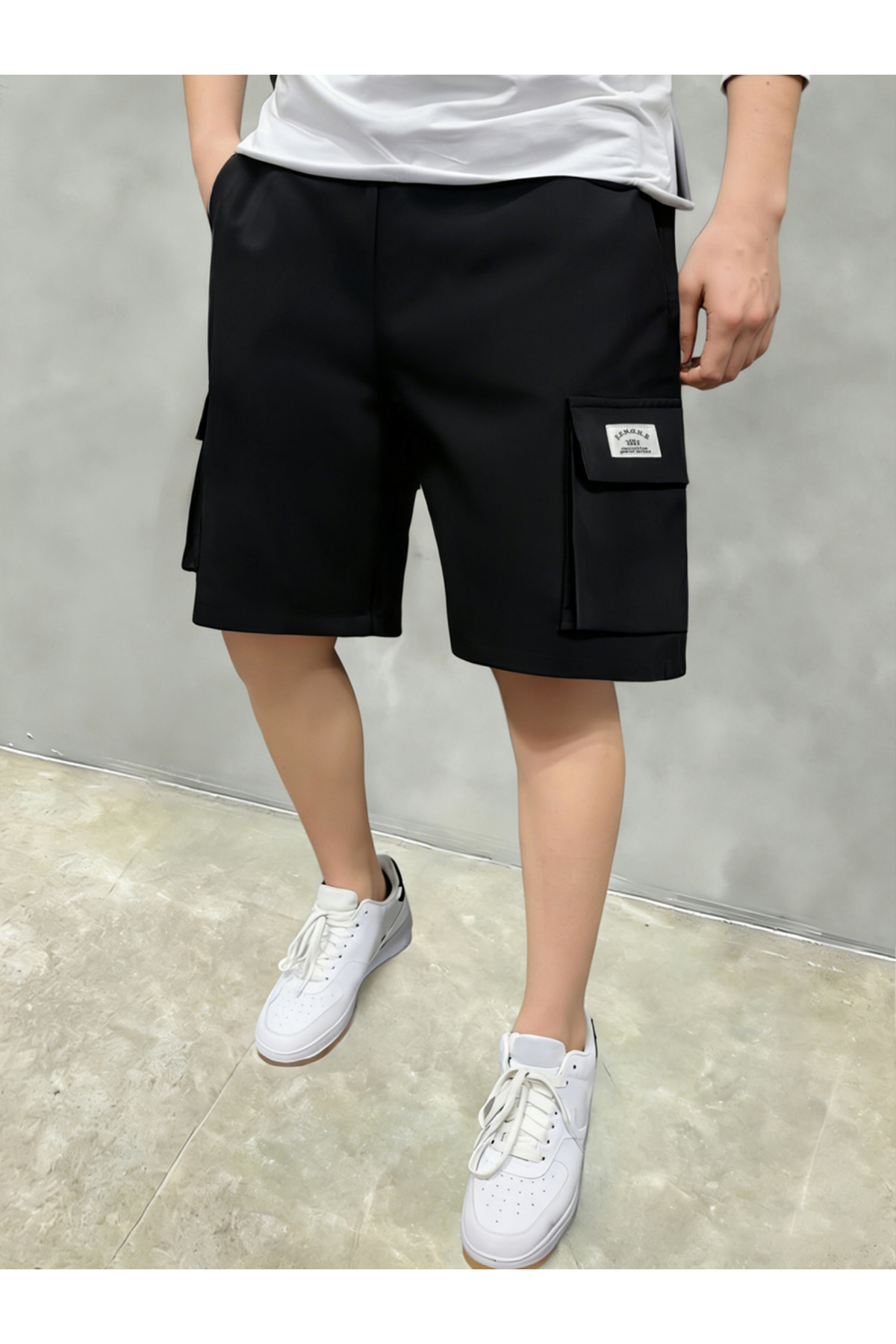 Take Two By Styli شورت رجالي أسود سادة متعدد الجيوب