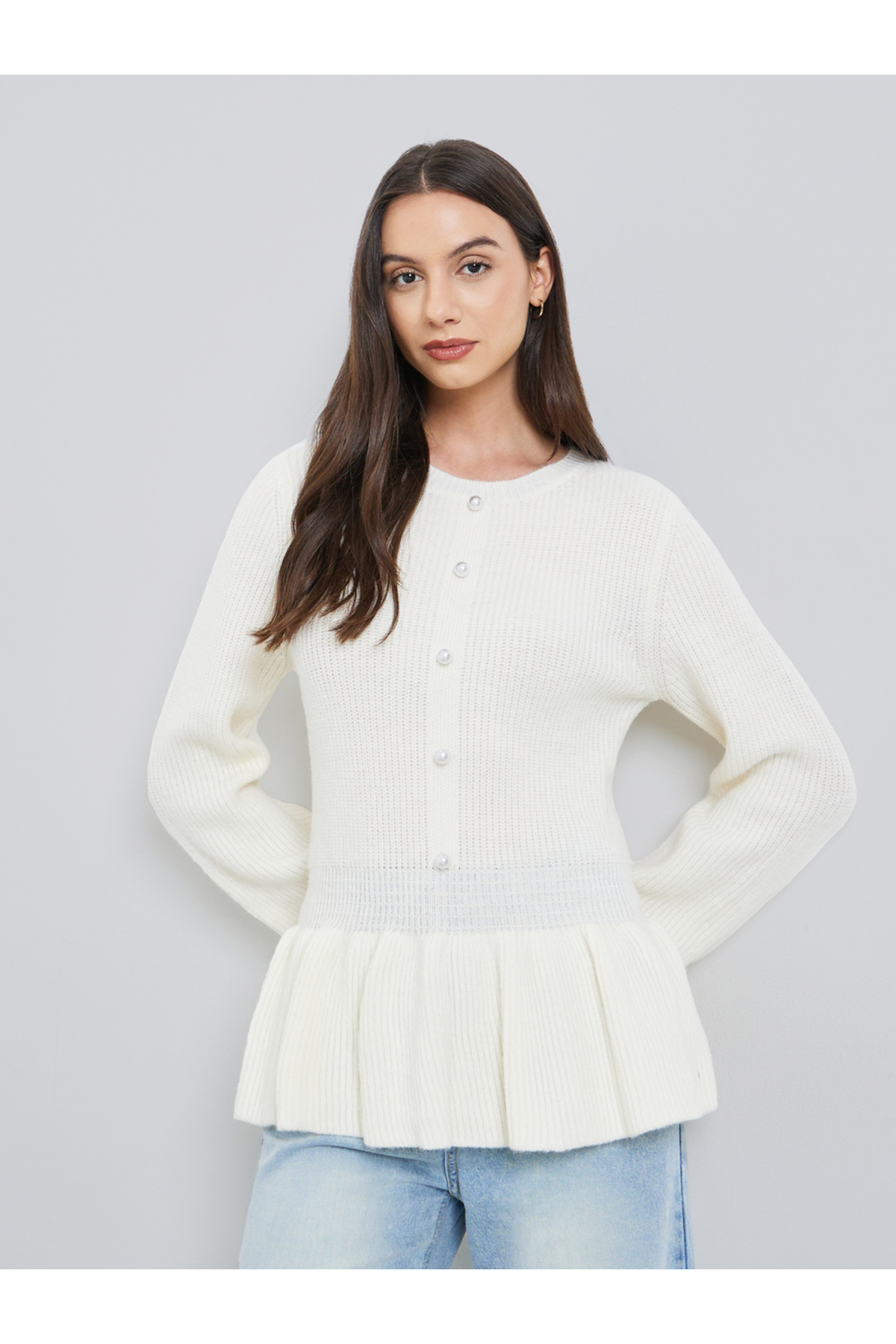 Take Two By Styli سترة صوفية سادة بأزرار أمامية وحافة مكشكشة