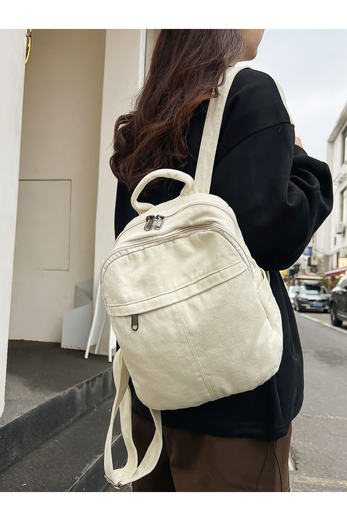 Take Two By Styli حقيبة ظهر من القماش الصلب مع سحاب للإغلاق