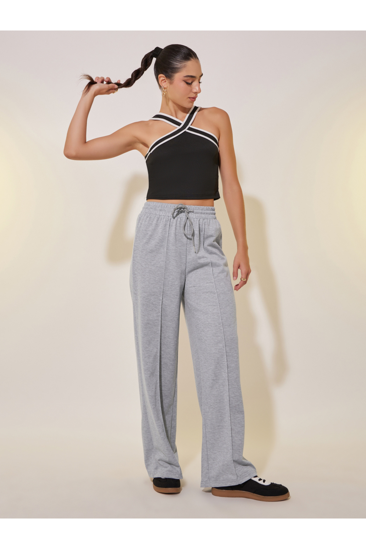 ميزات بنطلون فضفاض سادة من Take Two By Styli