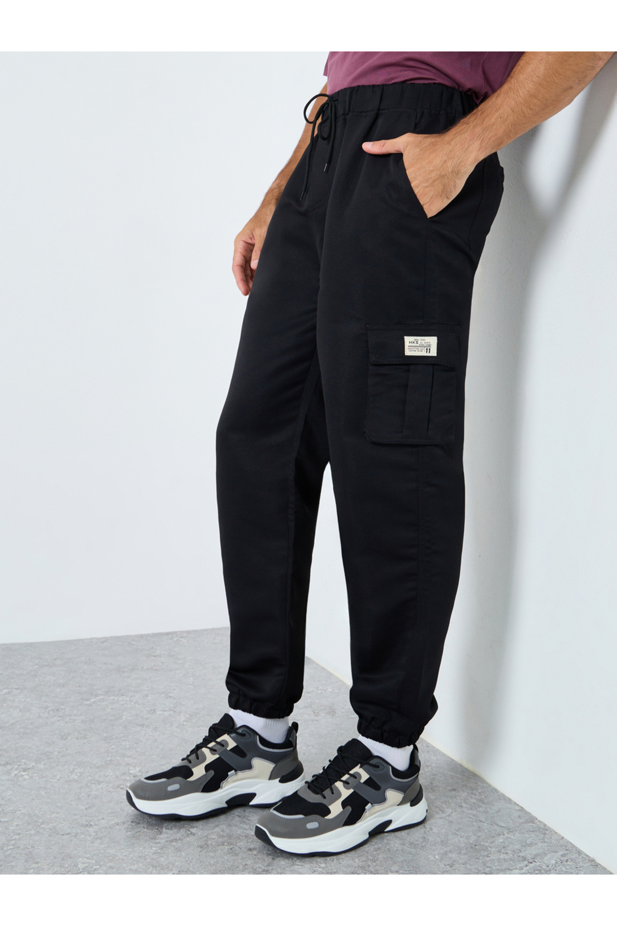 ميزات بنطال كارجو متين ومريح مع رباط من Take Two By Styli