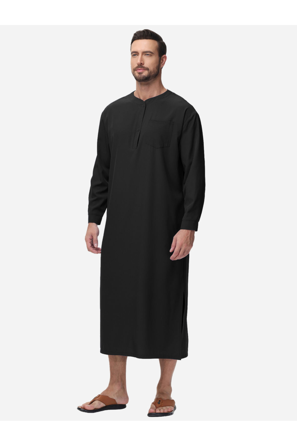 ميزات رداء سادة برقبة دائرية وأزرار أمامية وأكمام طويلة من Take Two By Styli