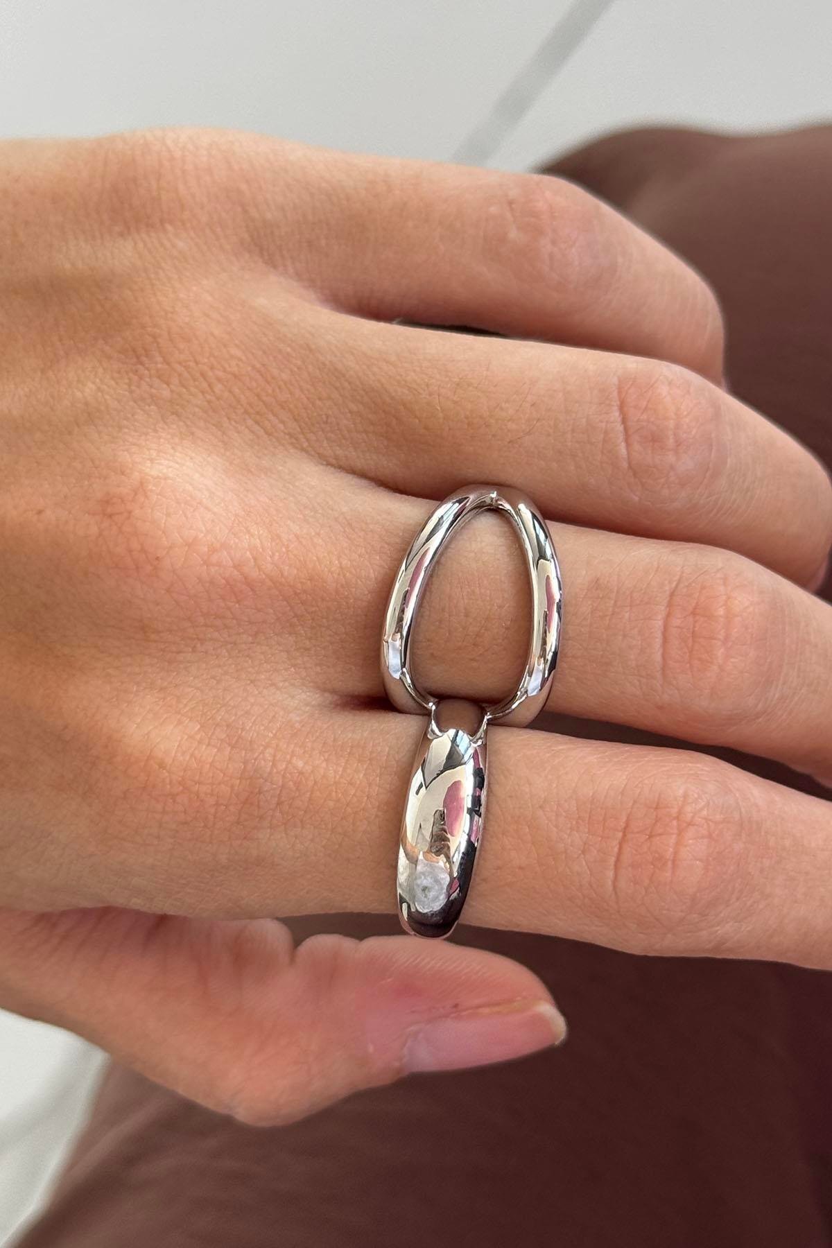ميزات خاتم فضي اللون بتصميم مزدوج قابل للتعديل من TAKIŞTIR