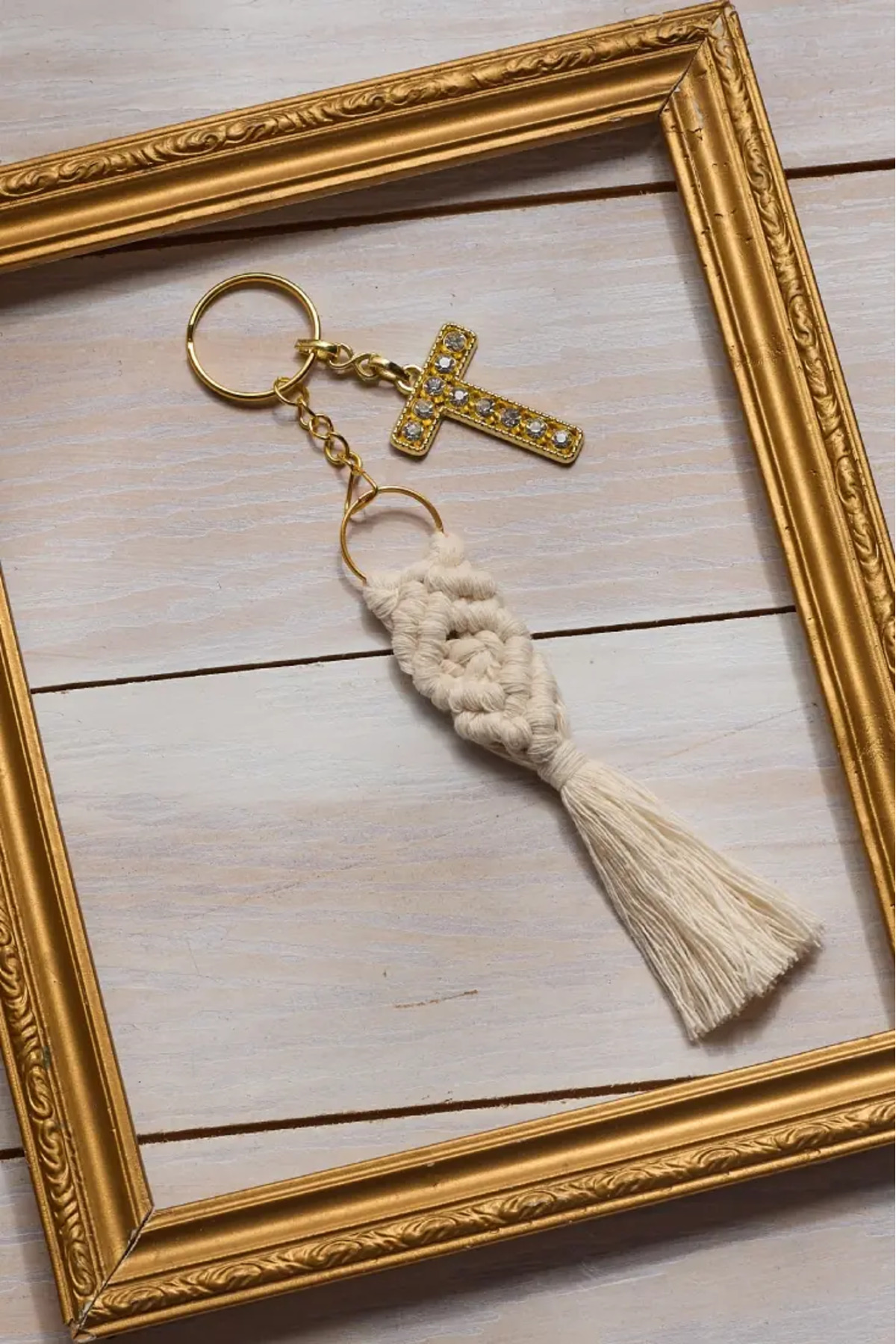 ميزات ميدالية مفاتيح منسوجة من مكرامية - أبيض من Talinhandmade