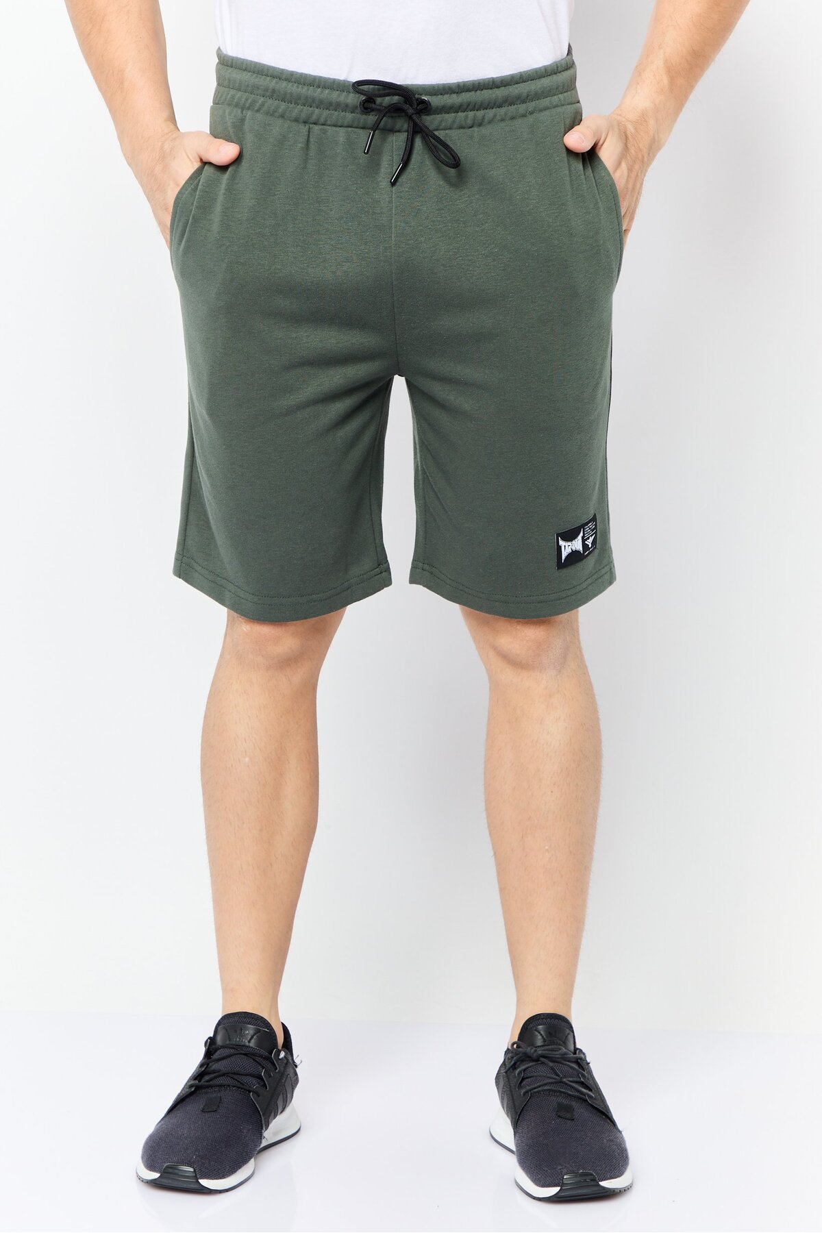 ميزات شورت رجالي أساسي برباط وشعار العلامة التجارية، رمادي غامق من Tapout