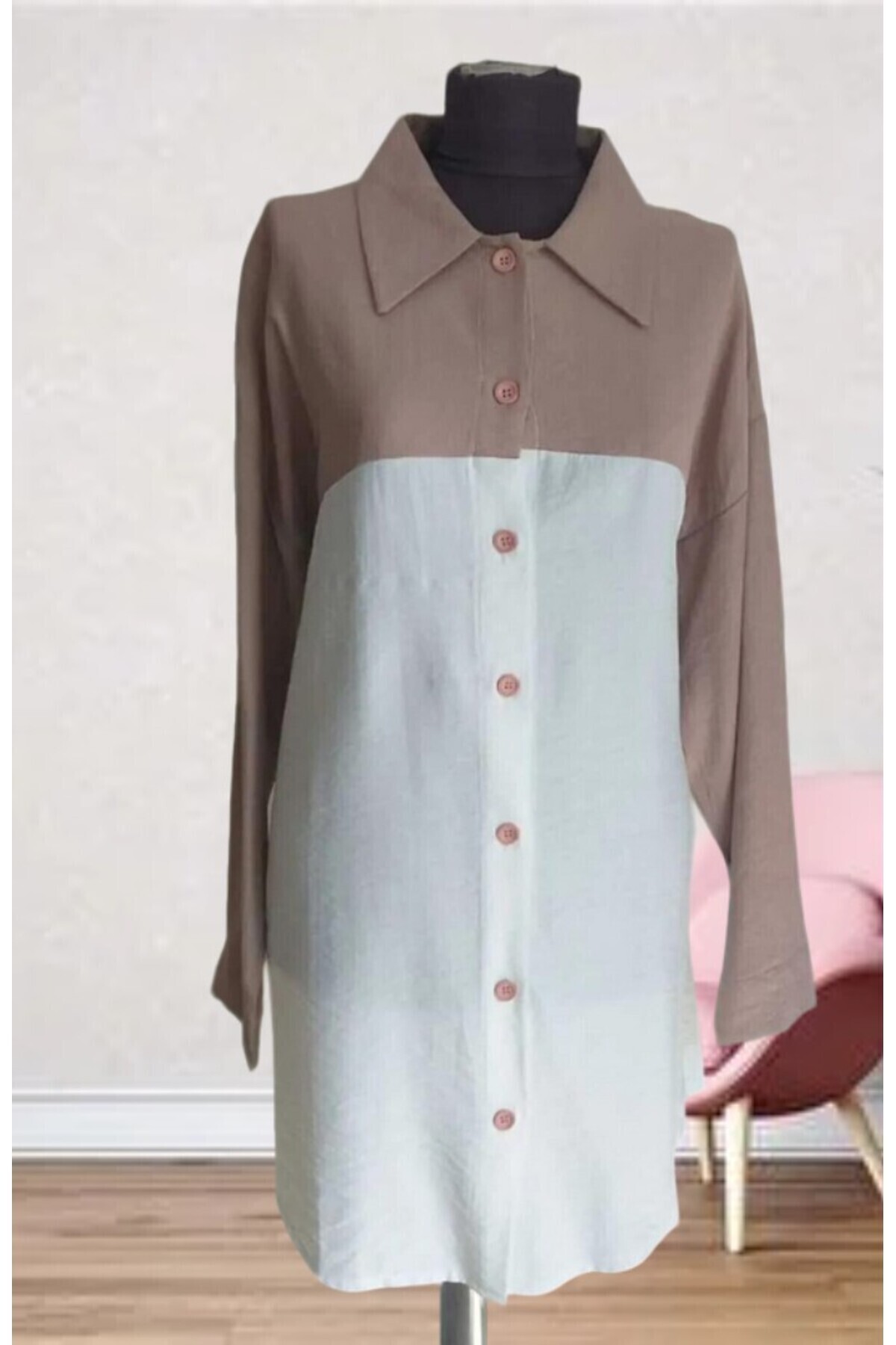 ميزات قميص كتان بأزرار مزدوجة اللون من TCN