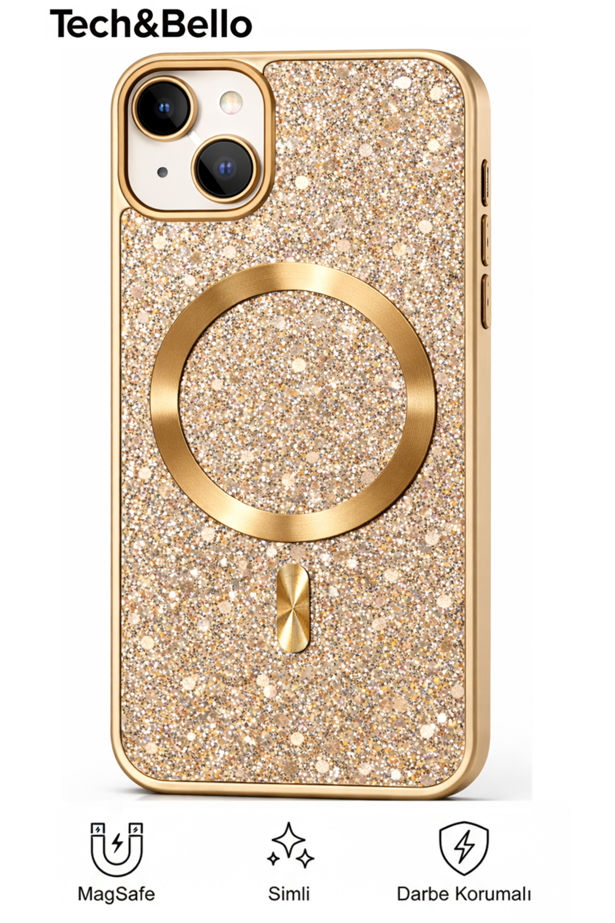 Tech&bello accessories حافظة فضية اللون مقاومة للصدمات ومتوافقة مع آيفون 15 مع حافة كاميرا بارزة