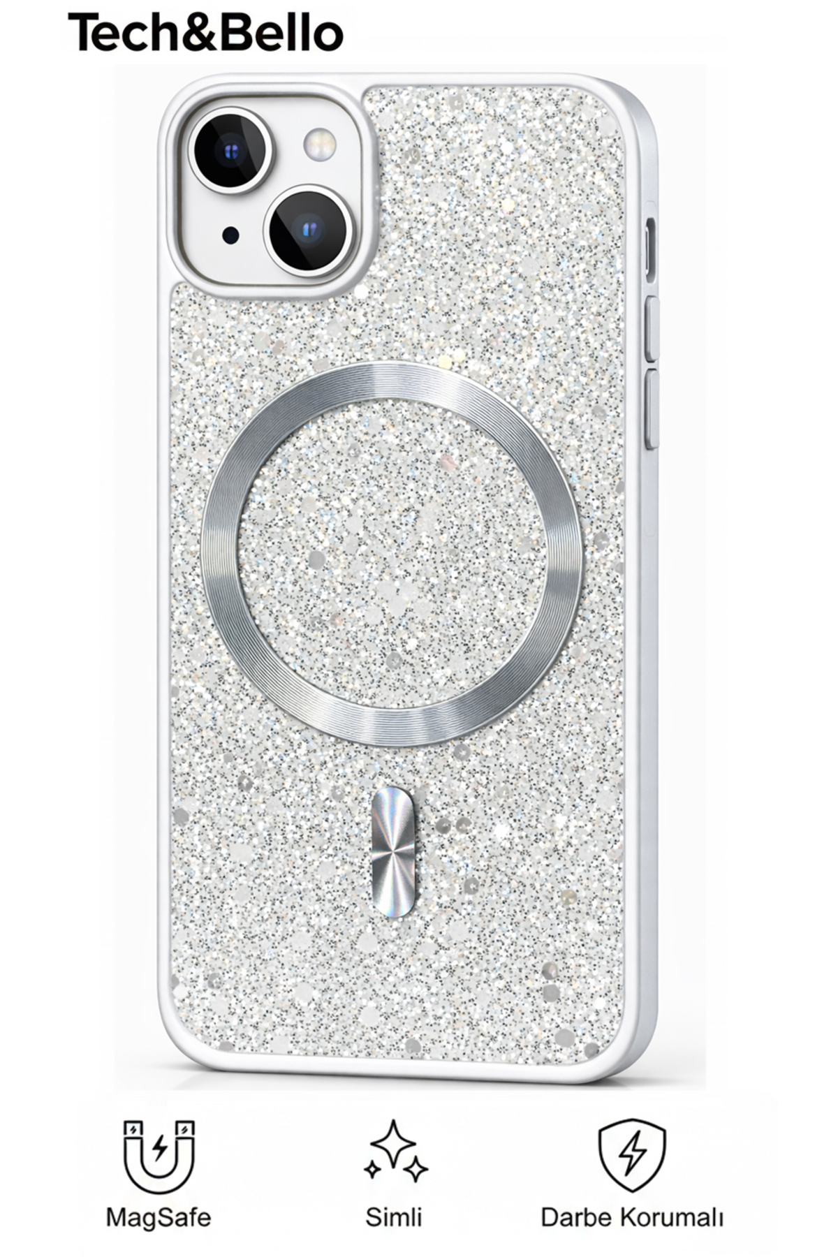 Tech&bello accessories حافظة فضية اللون مقاومة للصدمات ومتوافقة مع آيفون 15 مع حافة كاميرا بارزة