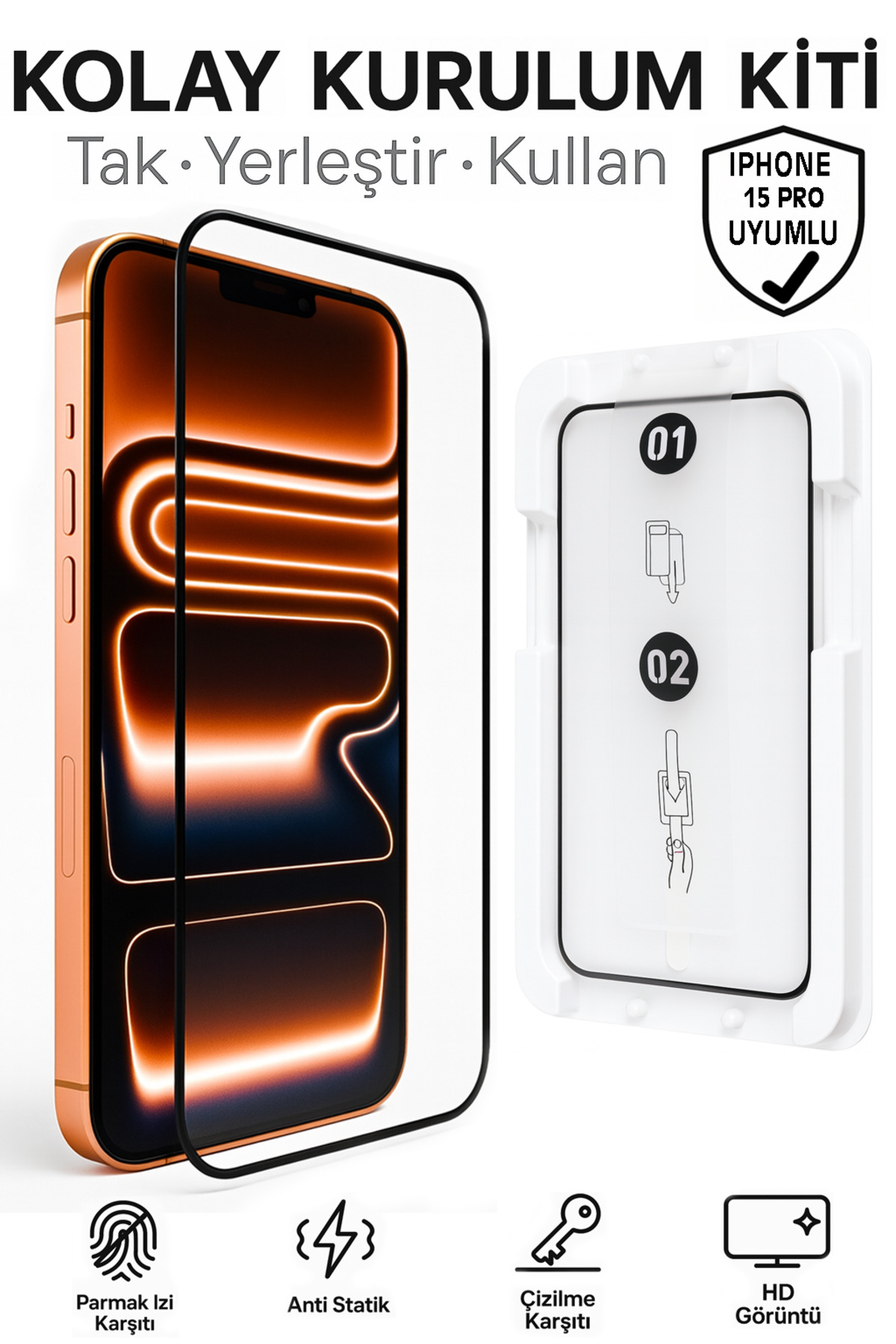 ميزات واقي شاشة شفاف يغطي الشاشة بالكامل متوافق مع آيفون 15 برو مع جهاز سهل التركيب من ماجيك بوكس من Tech&bello accessories