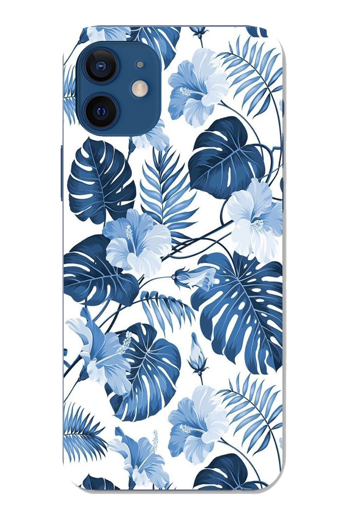 ميزات حافظة سيليكون مطبوع متوافقة مع هاتف iPhone 12-12 PRO بنمط أوراق الشجر الزرقاء والزهور من TechTree