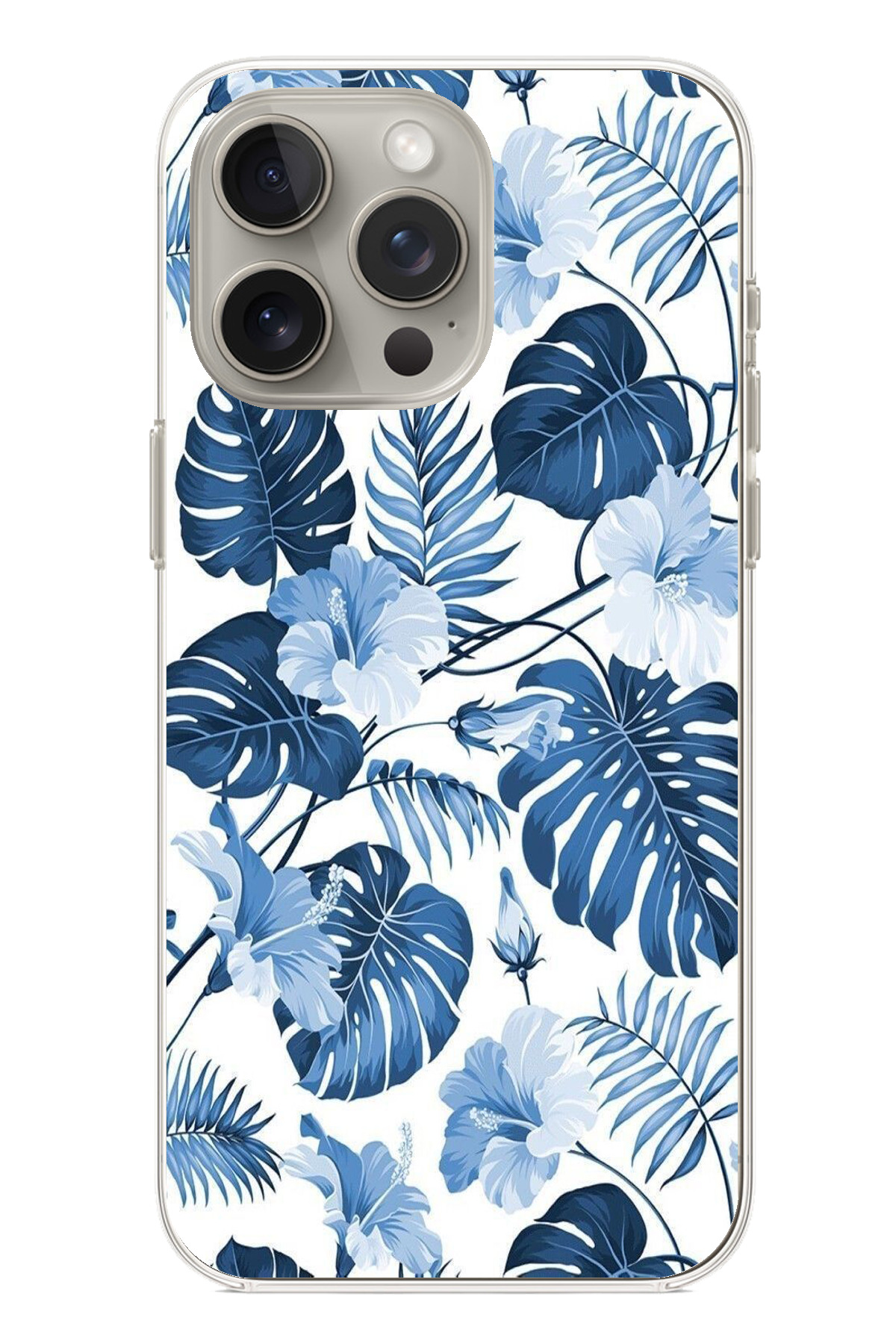 ميزات حافظة سيليكون مطبوع متوافقة مع هاتف iPhone 15 PRO بنمط أوراق الشجر الزرقاء والزهور من TechTree
