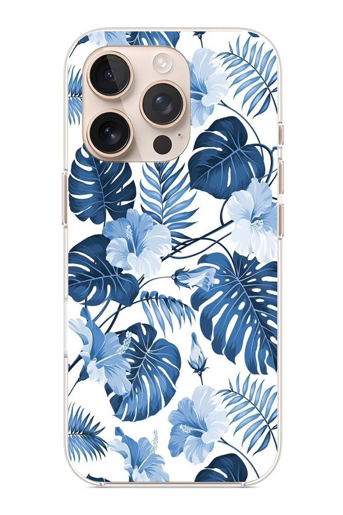 TechTree حافظة سيليكون مطبوع متوافقة مع هاتف iPhone 16 PRO MAX بنمط أوراق الشجر الزرقاء والزهور