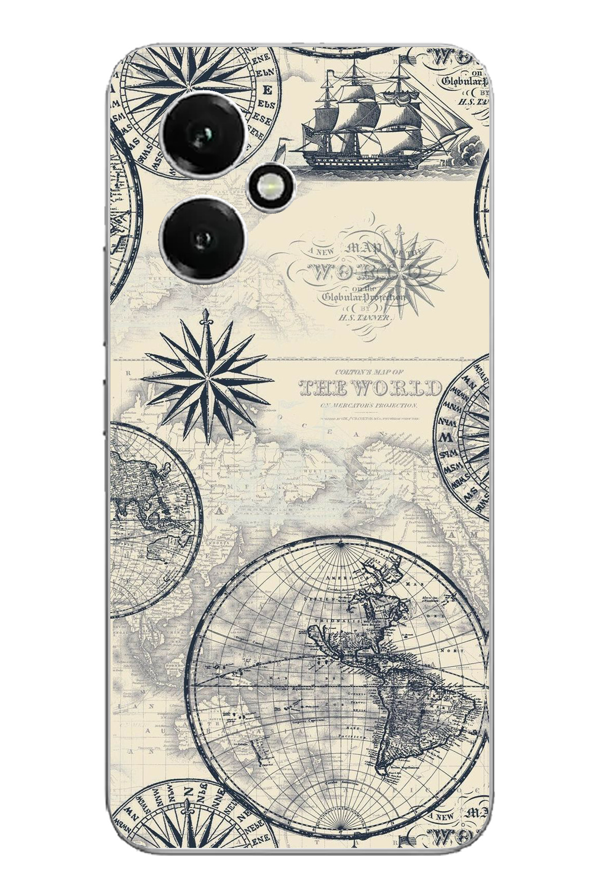 TechTree حافظة سيليكون متوافقة مع Honor 400 وقديمة الطراز تحتوي على خريطة العالم والبوصلة مطبوع