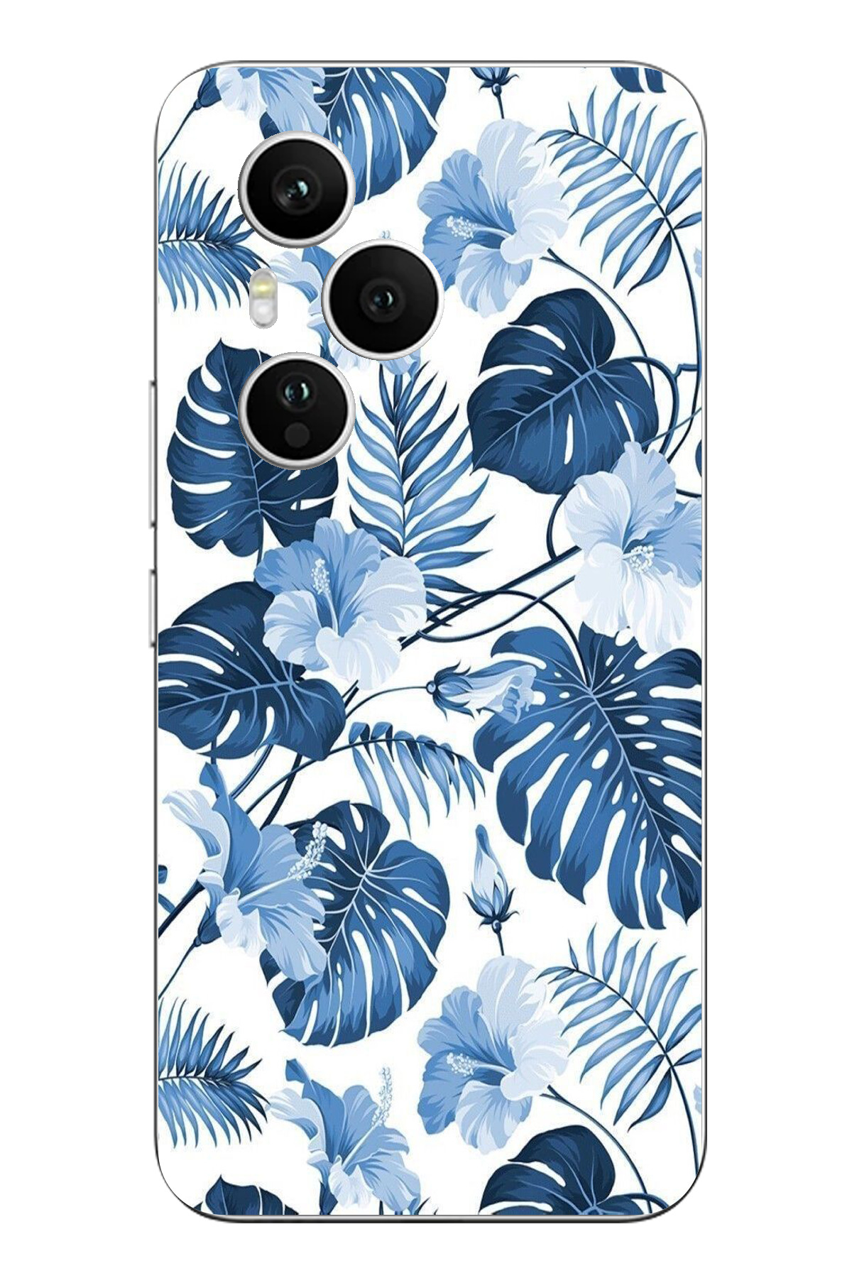 ميزات حافظة سيليكون مطبوع متوافقة مع هاتف Honor 400 PRO بنمط أوراق الشجر الزرقاء والزهور من TechTree