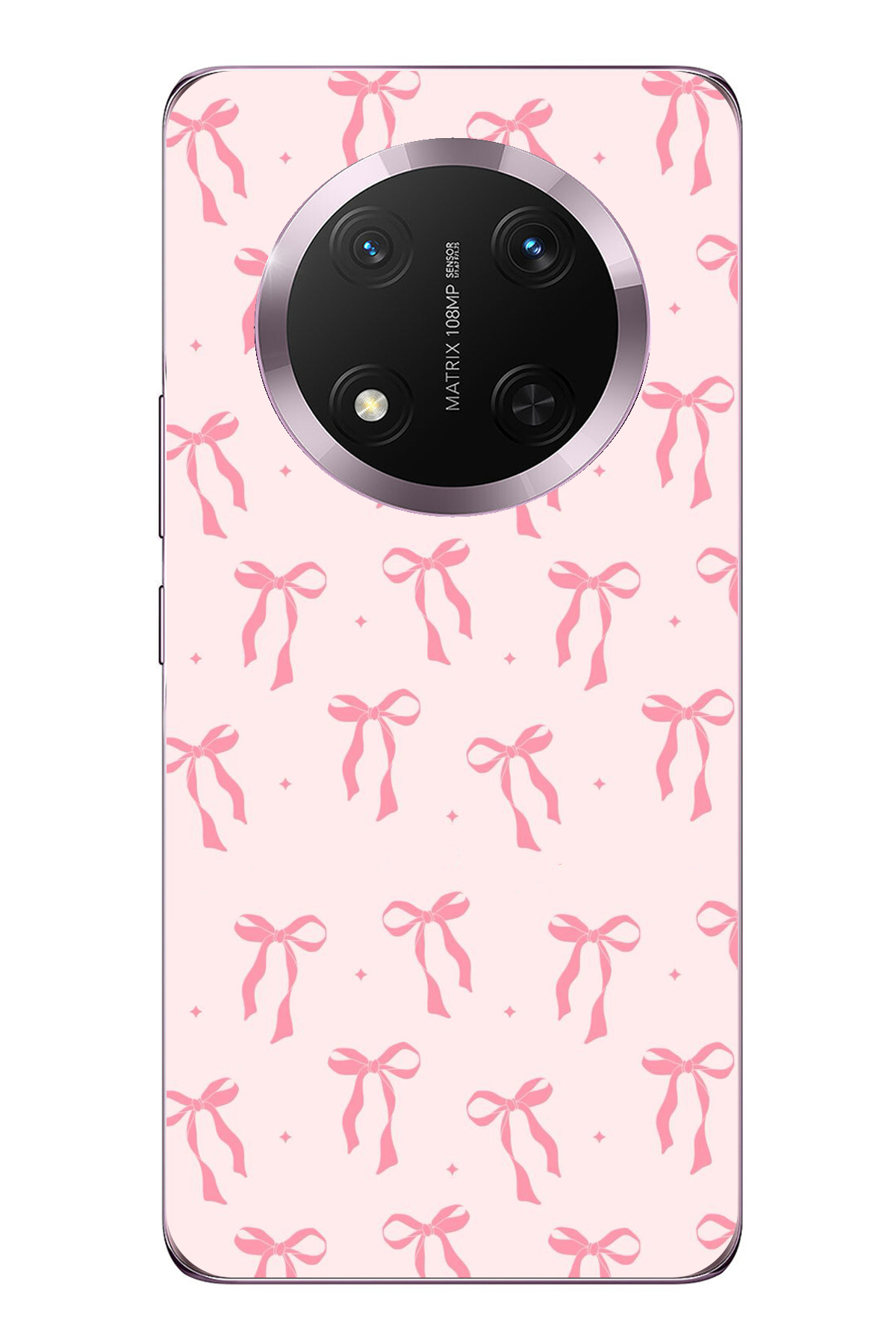 ميزات حافظة سيليكون مطبوع متوافقة مع هاتف Honor Magic 7 Lite بنمط فيونكة وردية ناعمة من TechTree