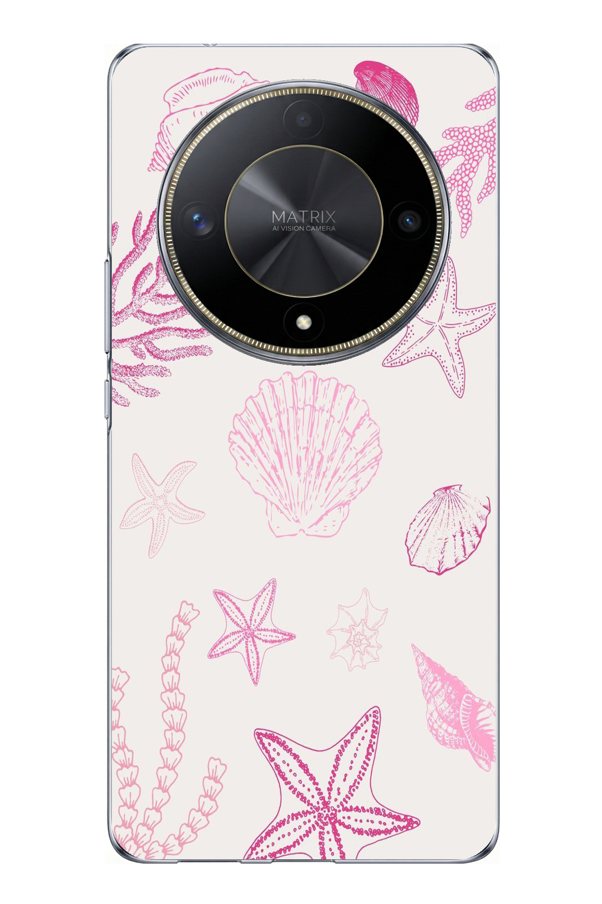 TechTree حافظة سيليكون متوافقة مع Honor X9B باللون الوردي وStarfish and Shell مطبوع