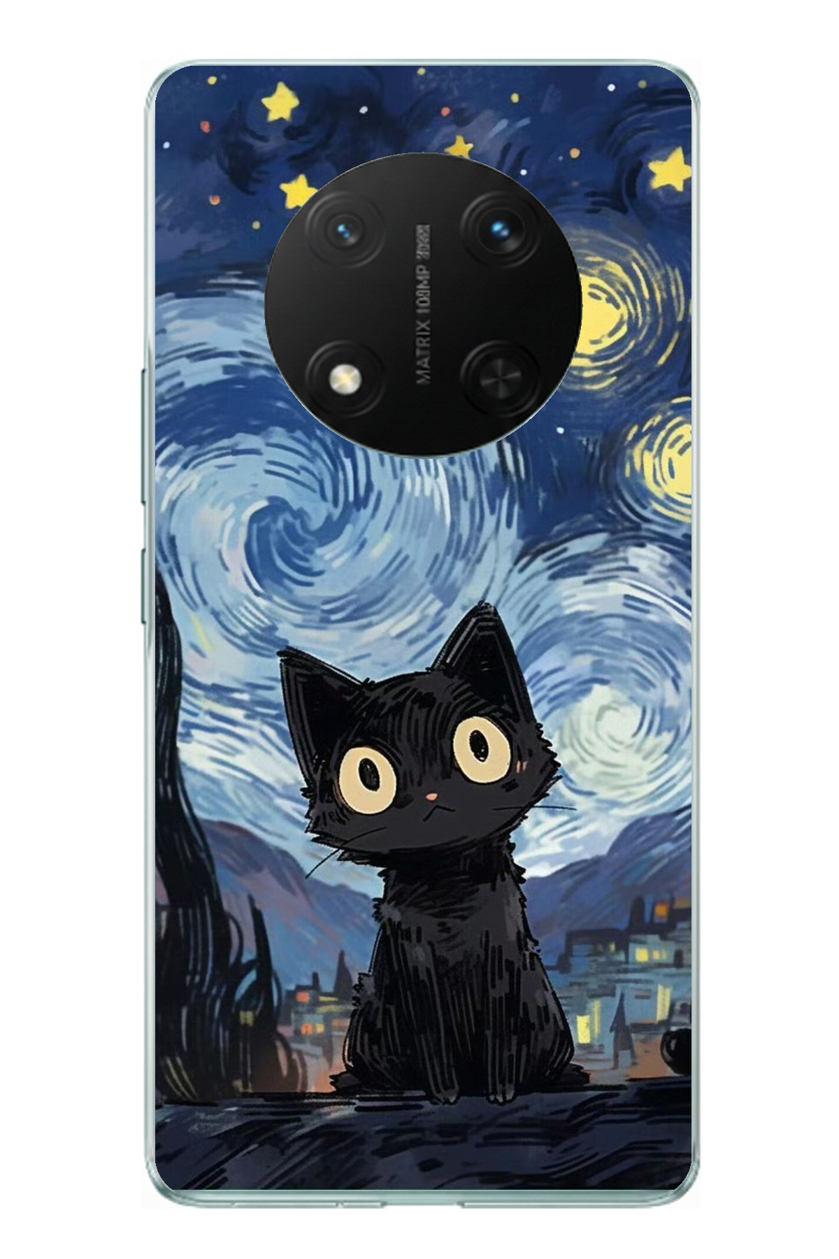 TechTree حافظة سيليكون متوافقة مع Honor X9C بتصميم قطة منتصف الليل مطبوع