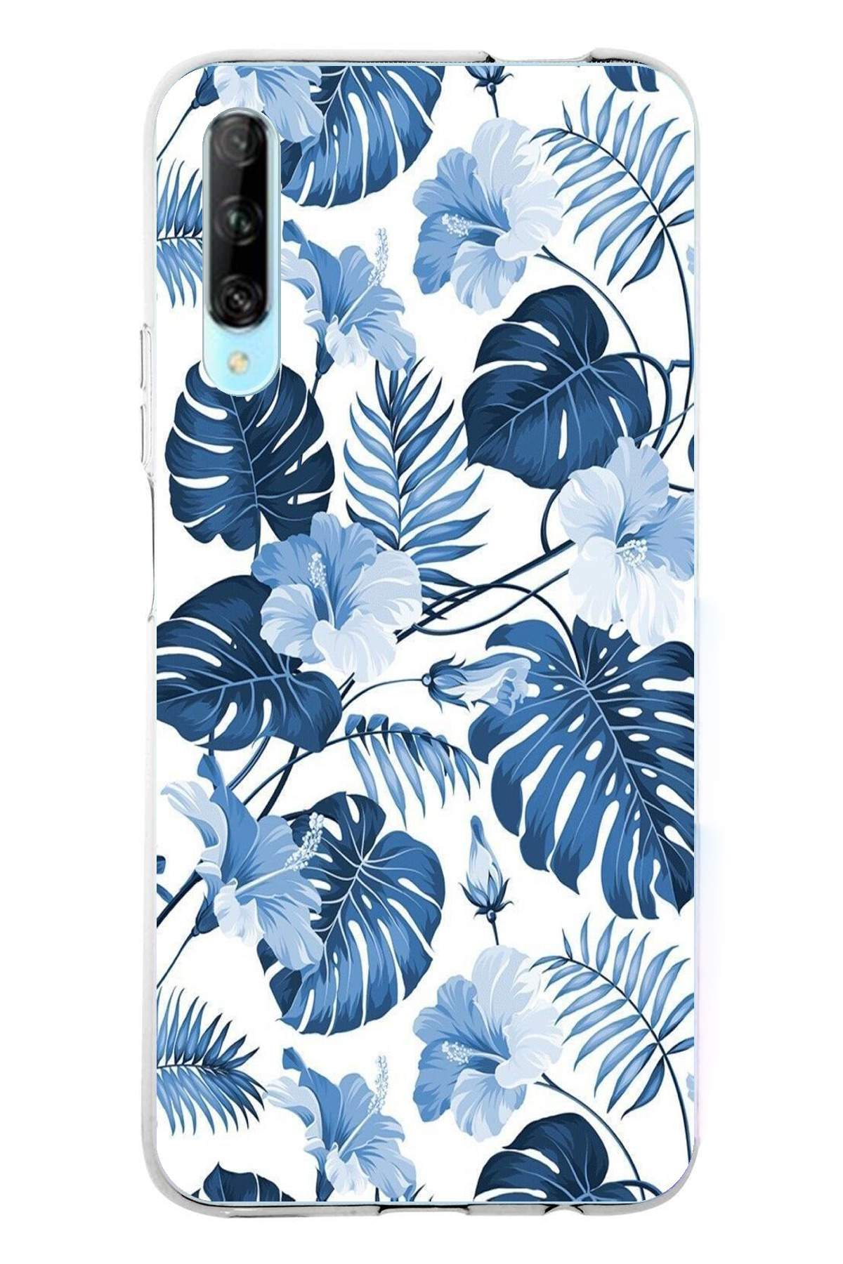 TechTree حافظة سيليكون مطبوع متوافقة مع هاتف هواوي بي سمارت برو بنمط أوراق الشجر الزرقاء والزهور