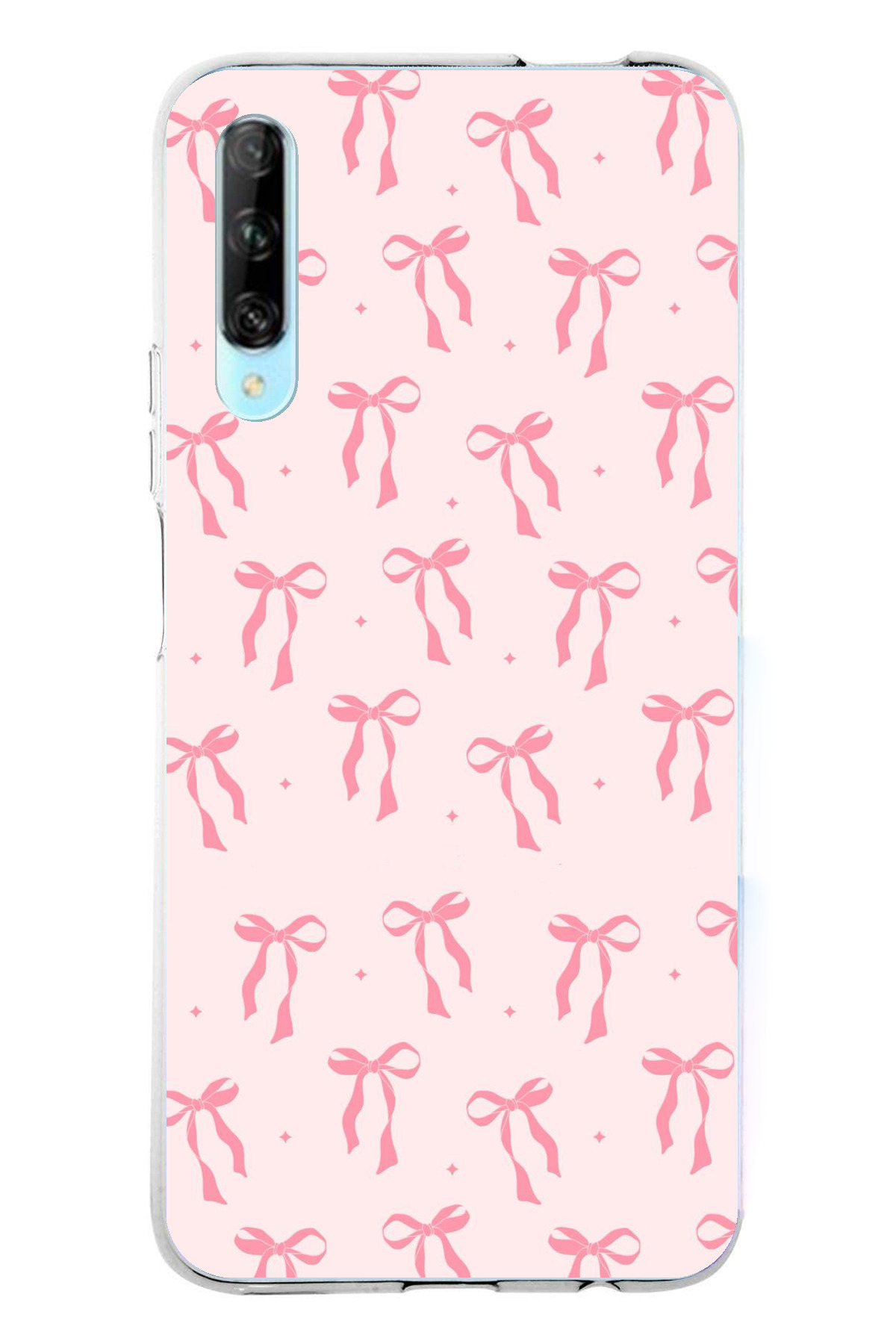 TechTree حافظة سيليكون مطبوع متوافقة مع هاتف هواوي بي سمارت برو بنمط فيونكة وردية ناعمة