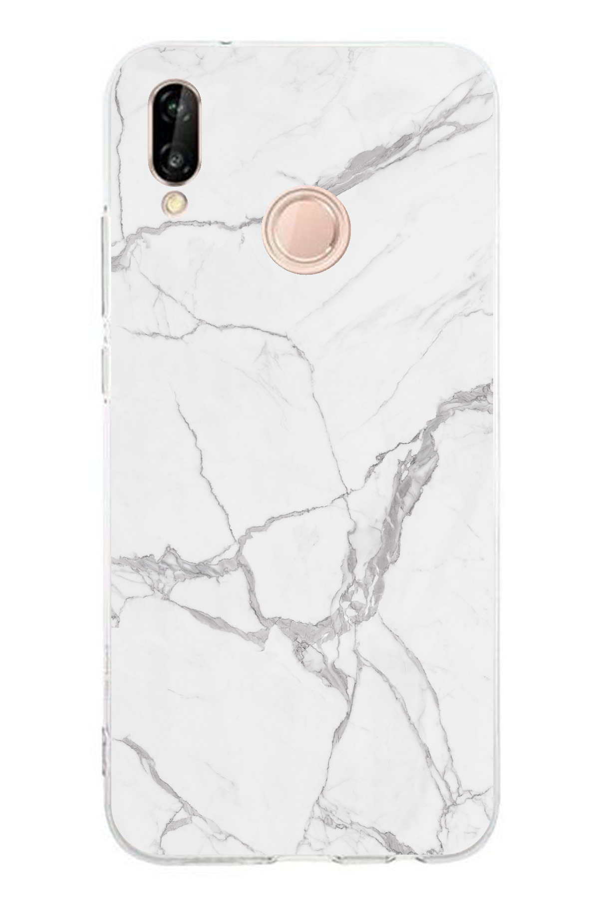 TechTree حافظة سيليكون رمادية اللون متوافقة مع هاتف هواوي P20 لايت مطبوع
