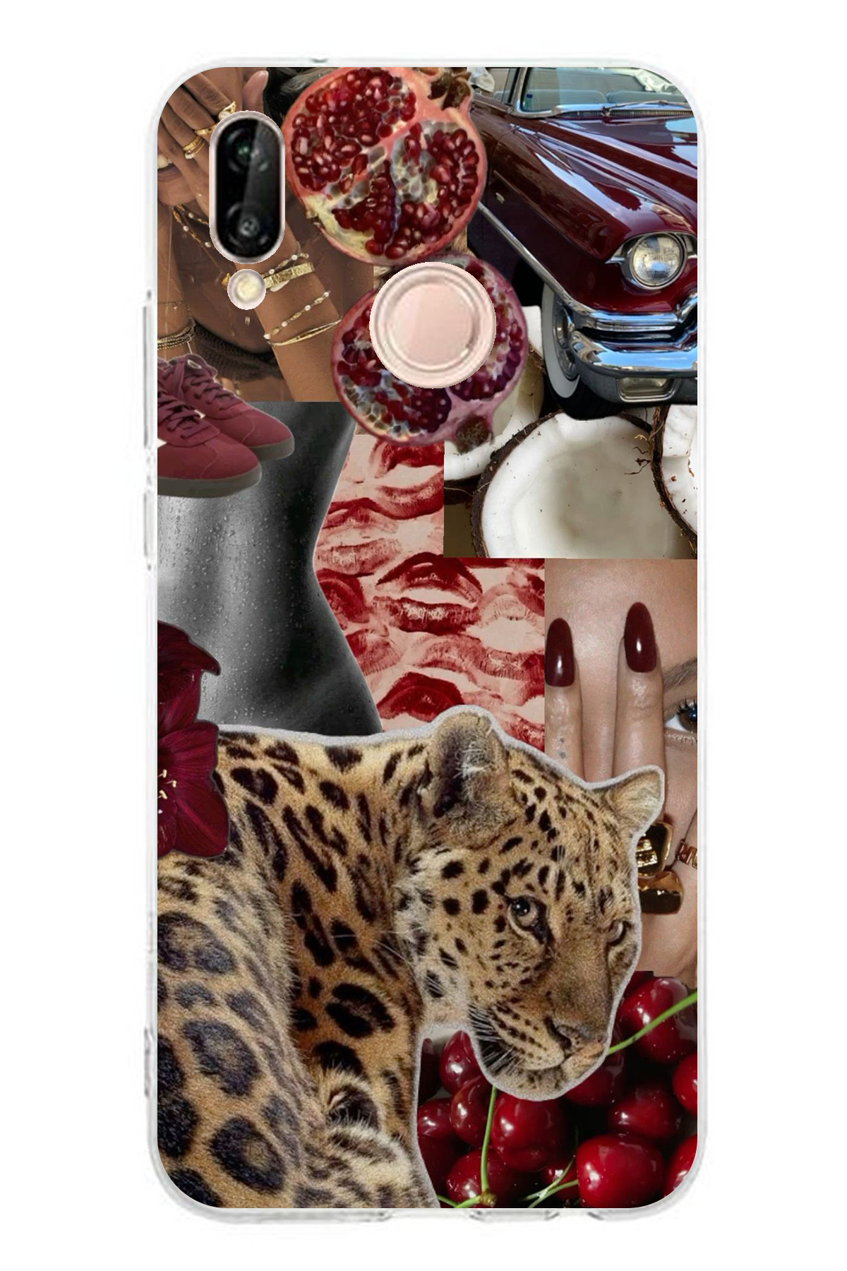 ميزات حافظة سيليكون متوافقة مع هاتف هواوي P20 لايت باللون الأحمر الفهد مطبوع من TechTree