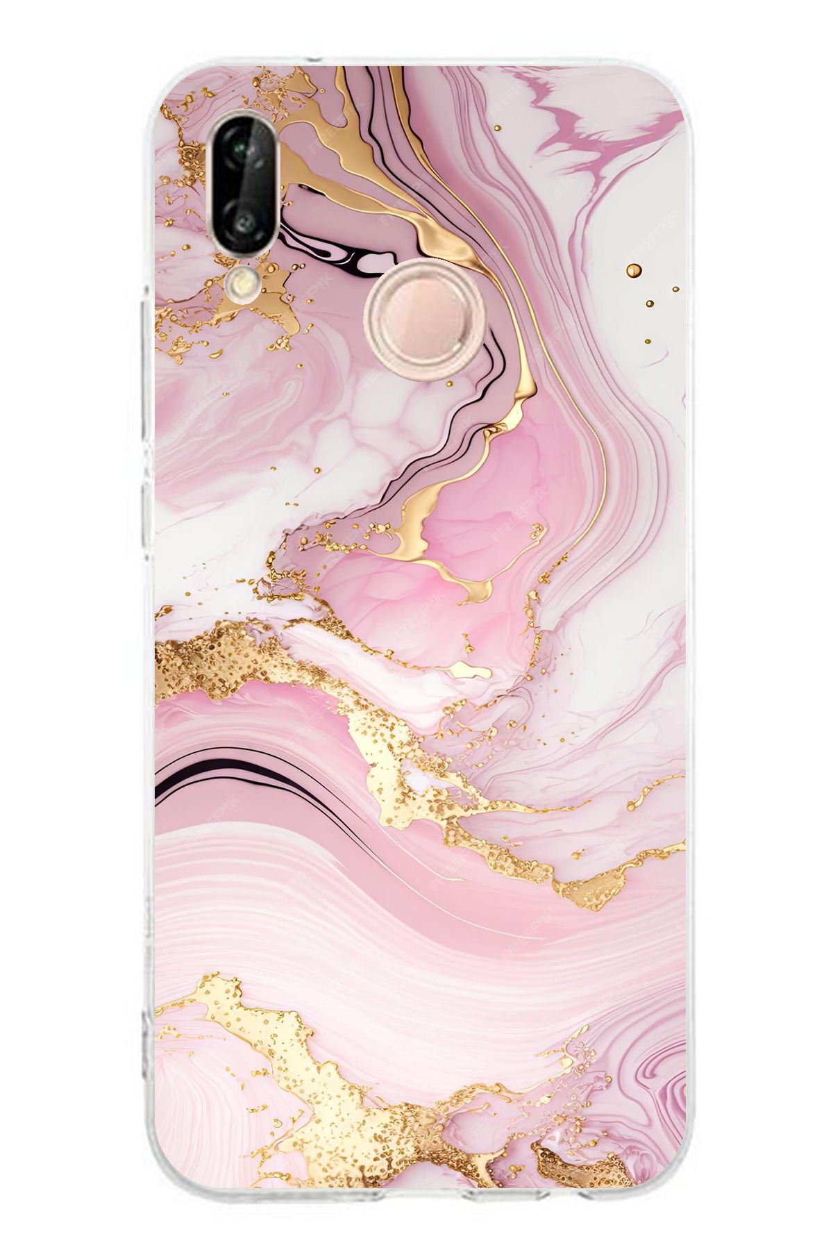 TechTree حافظة سيليكون متوافقة مع هاتف هواوي P20 لايت باللون الوردي الرخامي مطبوع