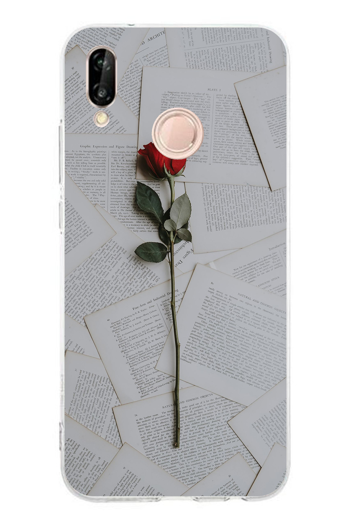 TechTree حافظة سيليكون متوافقة مع هاتف هواوي بي 20 لايت باللون الأحمر الوردي مطبوع