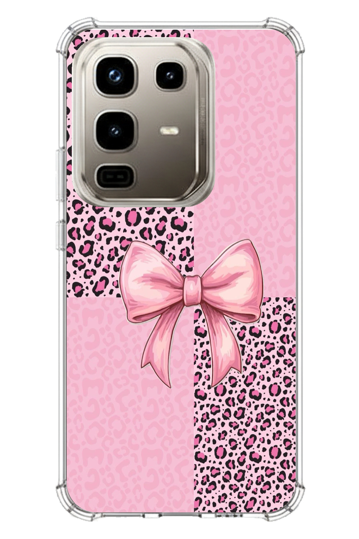 ميزات حافظة سيليكون متوافقة مع هاتف Infinix Note 50 PRO بنمط الفهد الوردي وشريط مطبوع من TechTree
