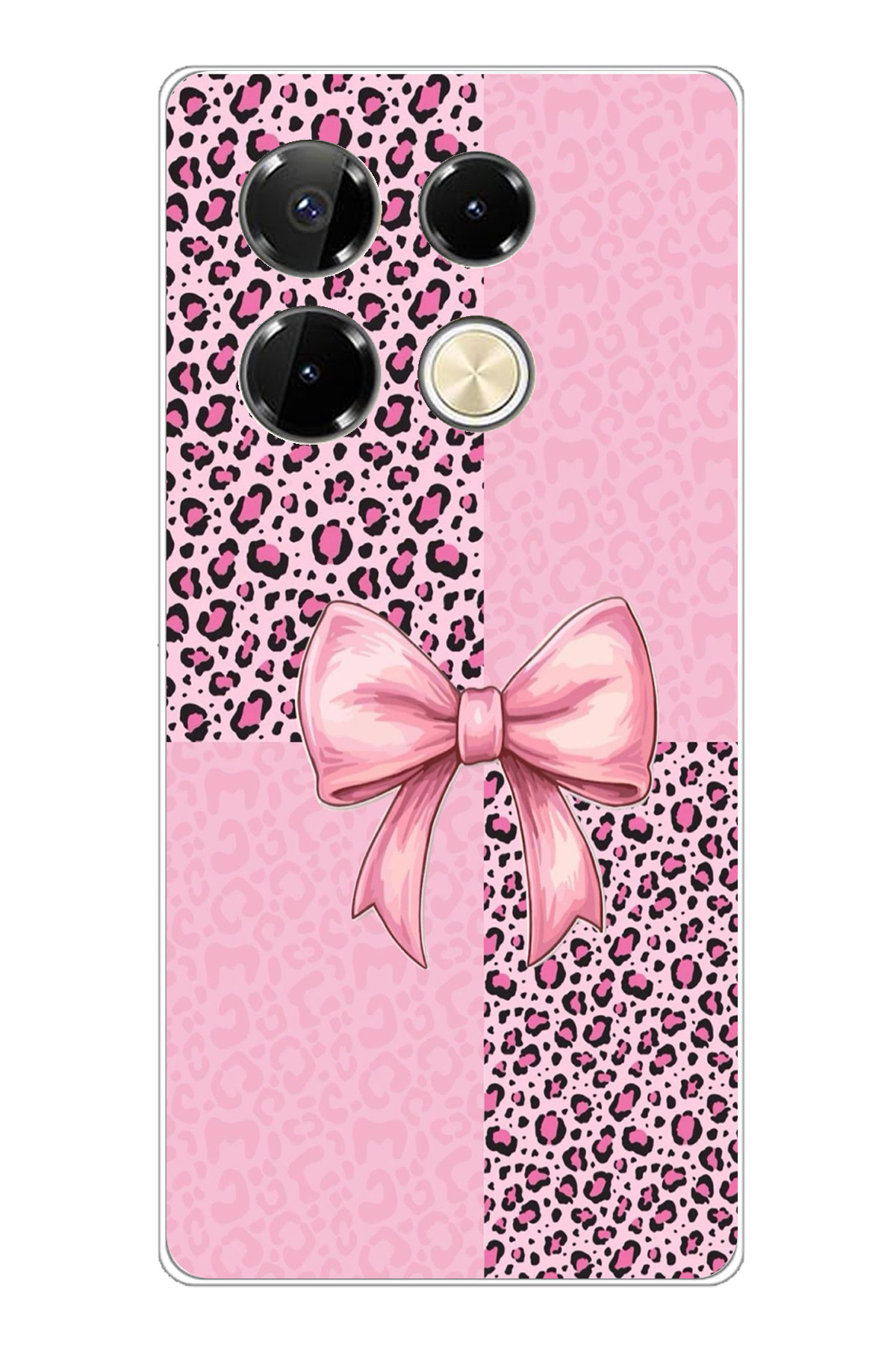 TechTree حافظة سيليكون متوافقة مع هاتف Infinix Note 40 PRO بنمط الفهد الوردي وشريط مطبوع