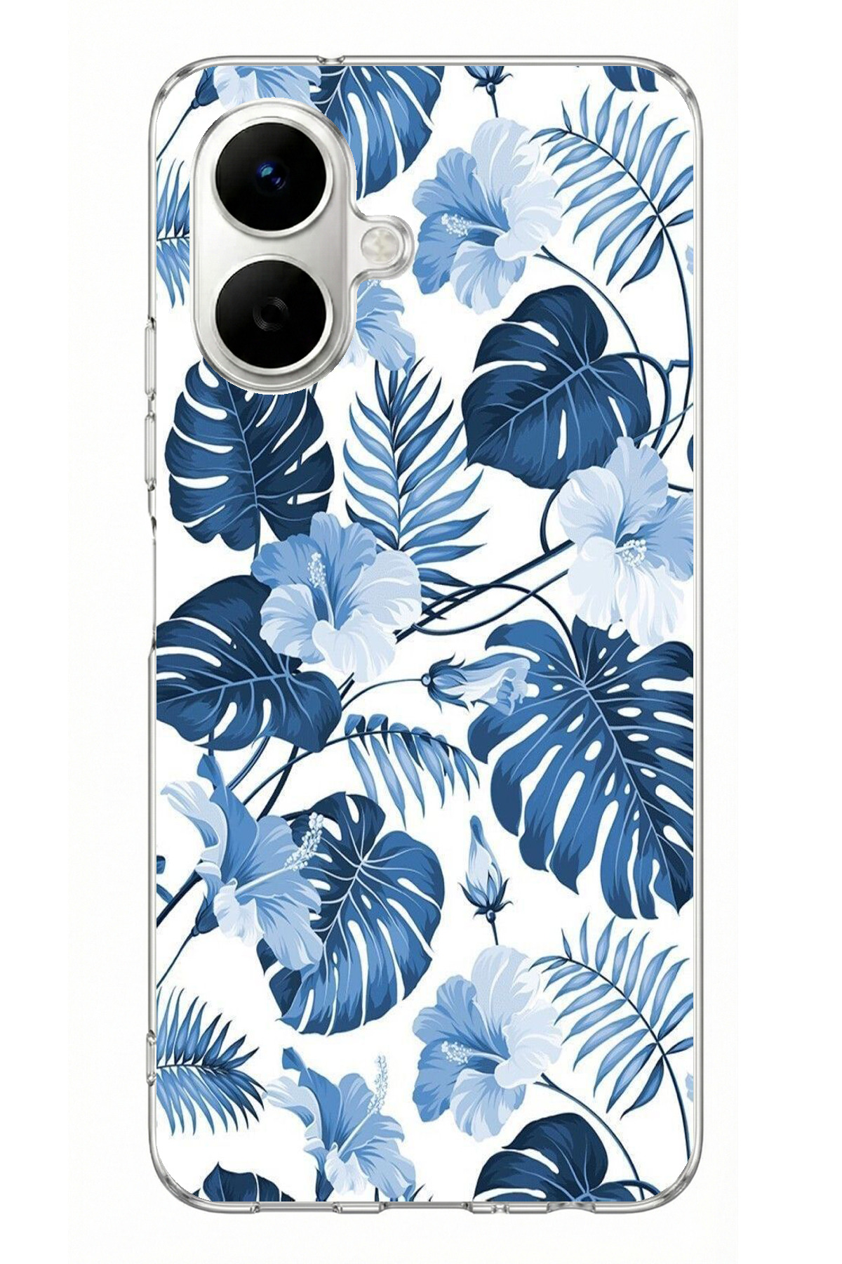 ميزات حافظة سيليكون مطبوعة بنمط أوراق وزهور زرقاء متوافقة مع هاتف Infinix Smart 10 من TechTree