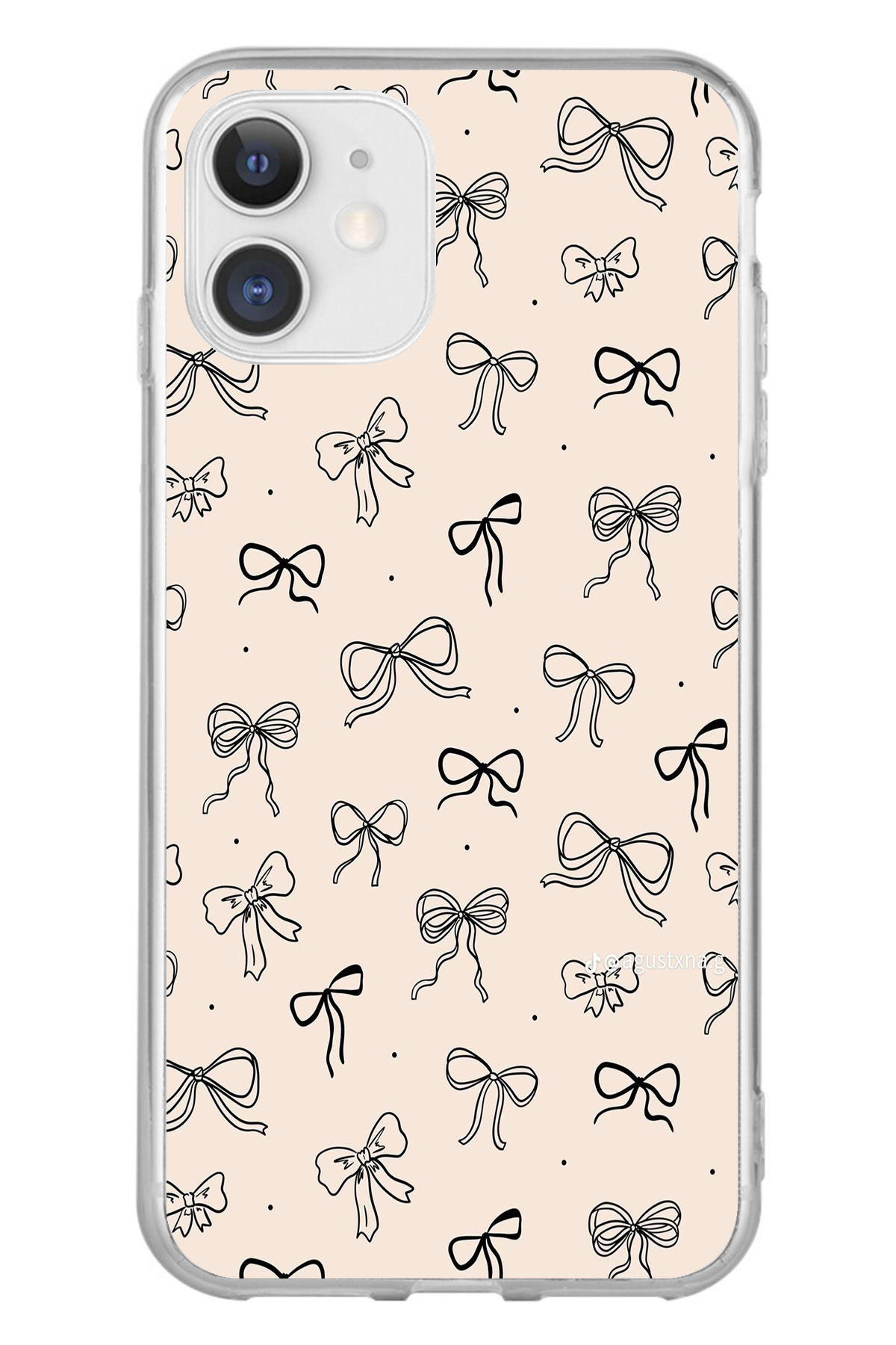 ميزات حافظة سيليكون متوافقة مع هاتف iPhone 11 باللون الأسود ونمط فيونكة كريمية اللون مطبوع من TechTree