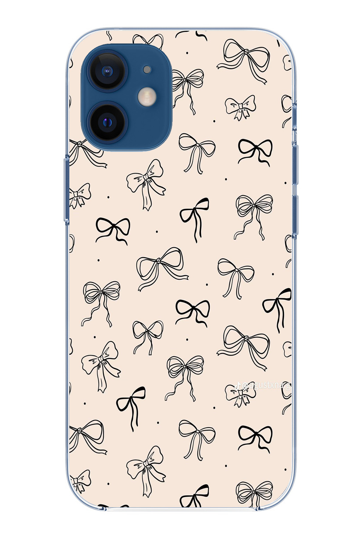 TechTree حافظة سيليكون متوافقة مع هاتف iPhone 12 Mini باللون الأسود ونمط فيونكة كريمية اللون مطبوع