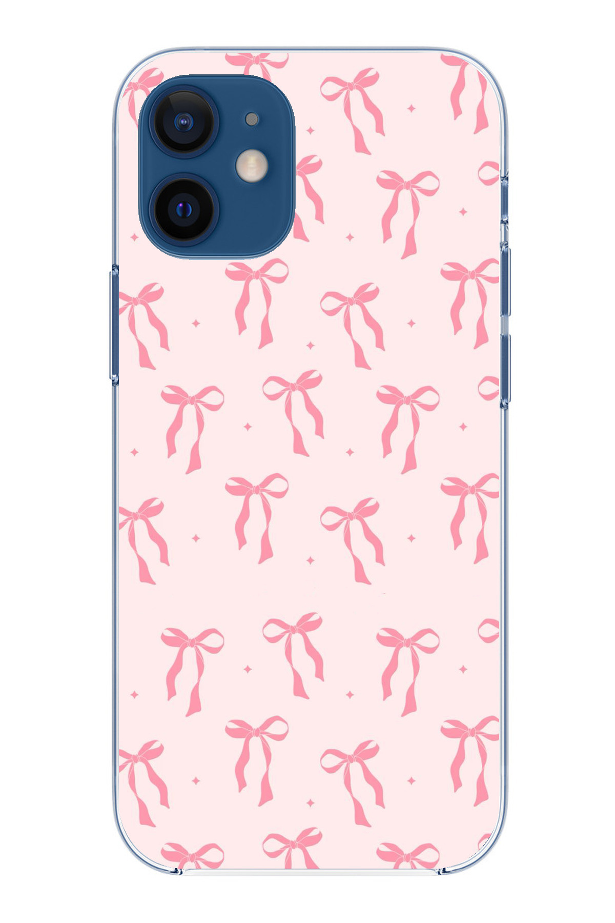 ميزات حافظة سيليكون مطبوع متوافقة مع هاتف iPhone 12 Mini بنمط فيونكة وردية ناعمة من TechTree