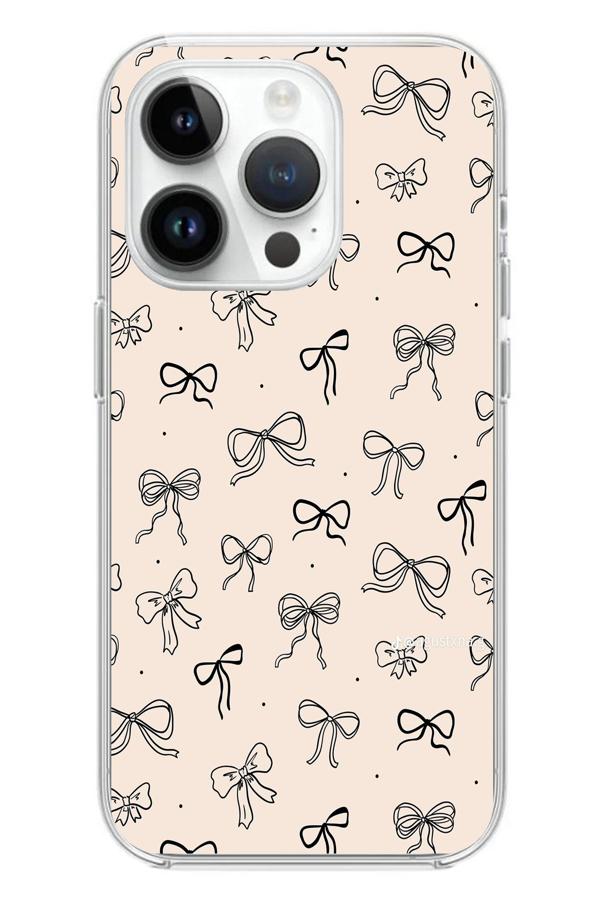 TechTree حافظة سيليكون متوافقة مع هاتف iPhone 14 PRO باللون الأسود ونمط فيونكة كريمية اللون مطبوع