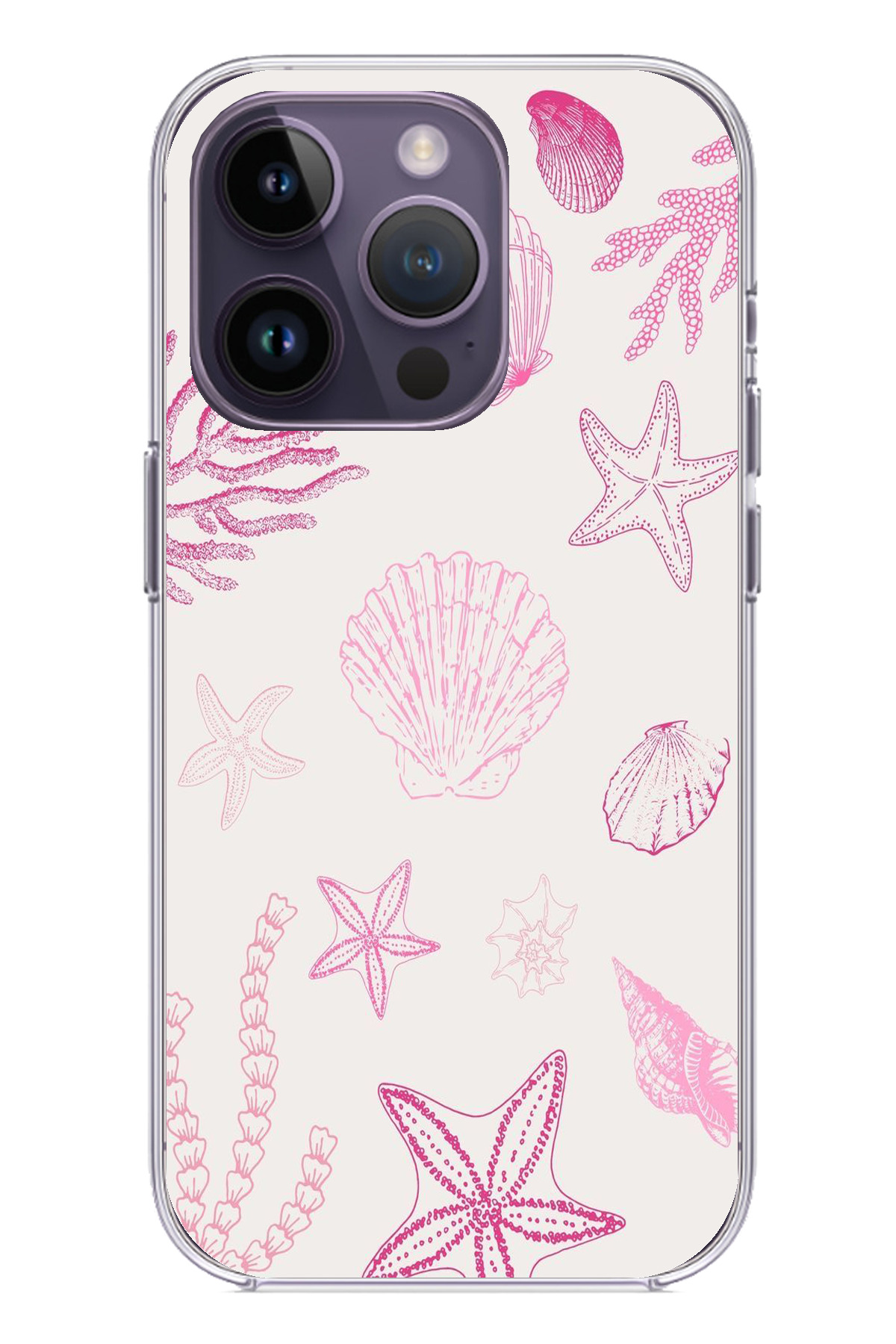 TechTree حافظة سيليكون متوافقة مع هاتف iPhone 14 PRO MAX باللون الوردي وStarfish and Shell مطبوع