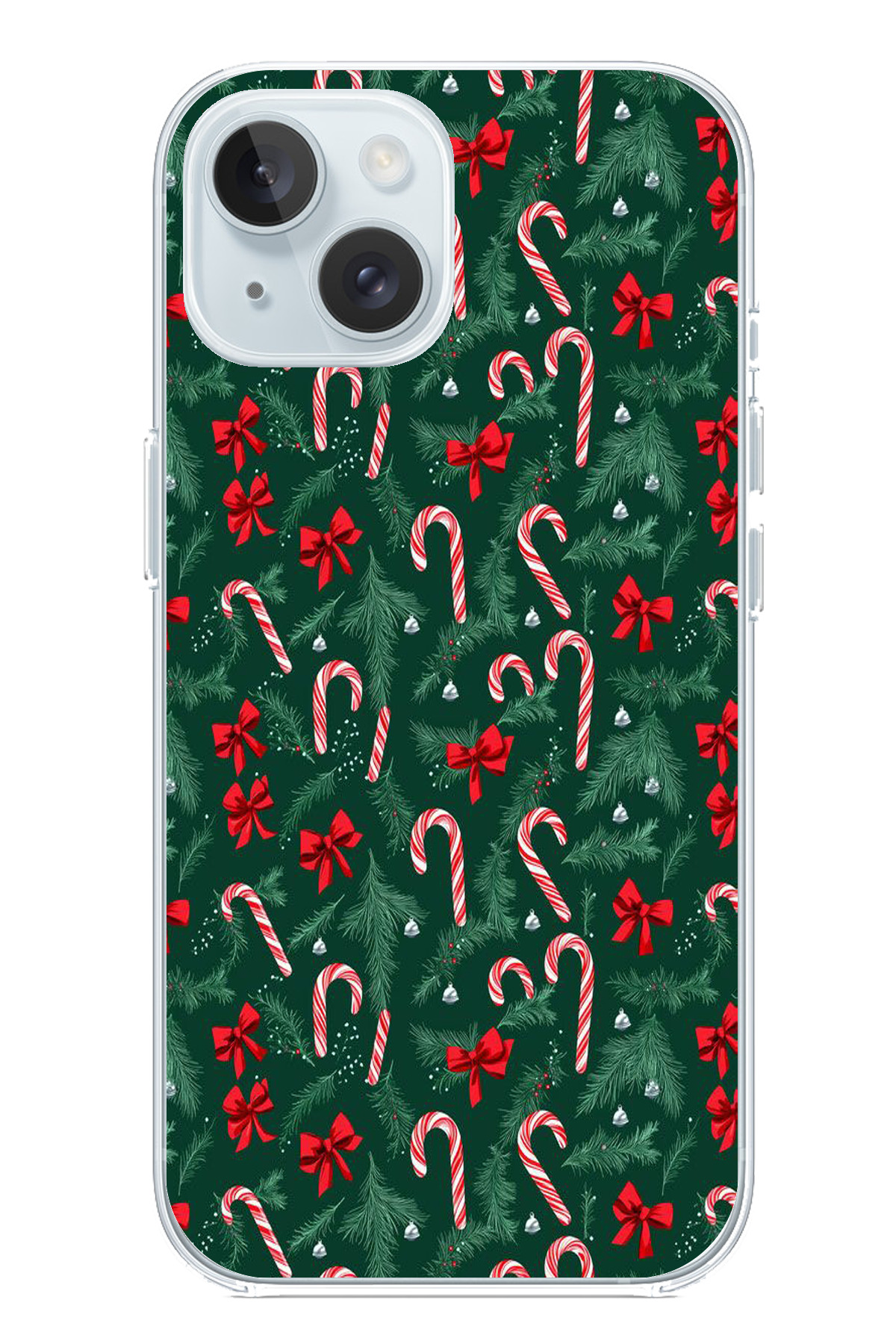 ميزات غطاء سيليكون متوافق مع هاتف iPhone 15 لشجرة عيد الميلاد وعصا الحلوى مطبوع من TechTree